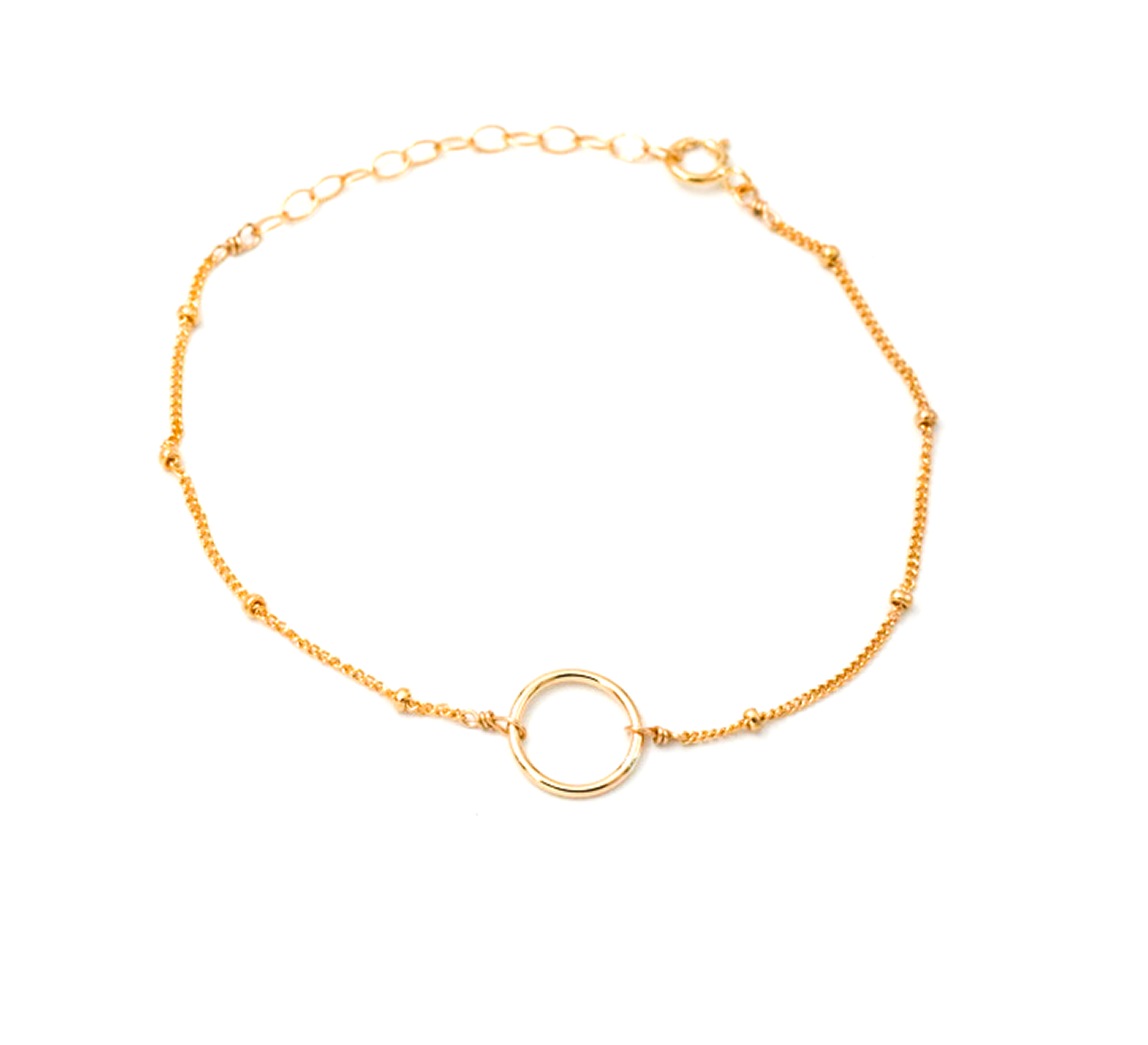 Material: Gold filled. Length: 5" chain with a 1.5" extender. Charm: .75" gold filled ring.