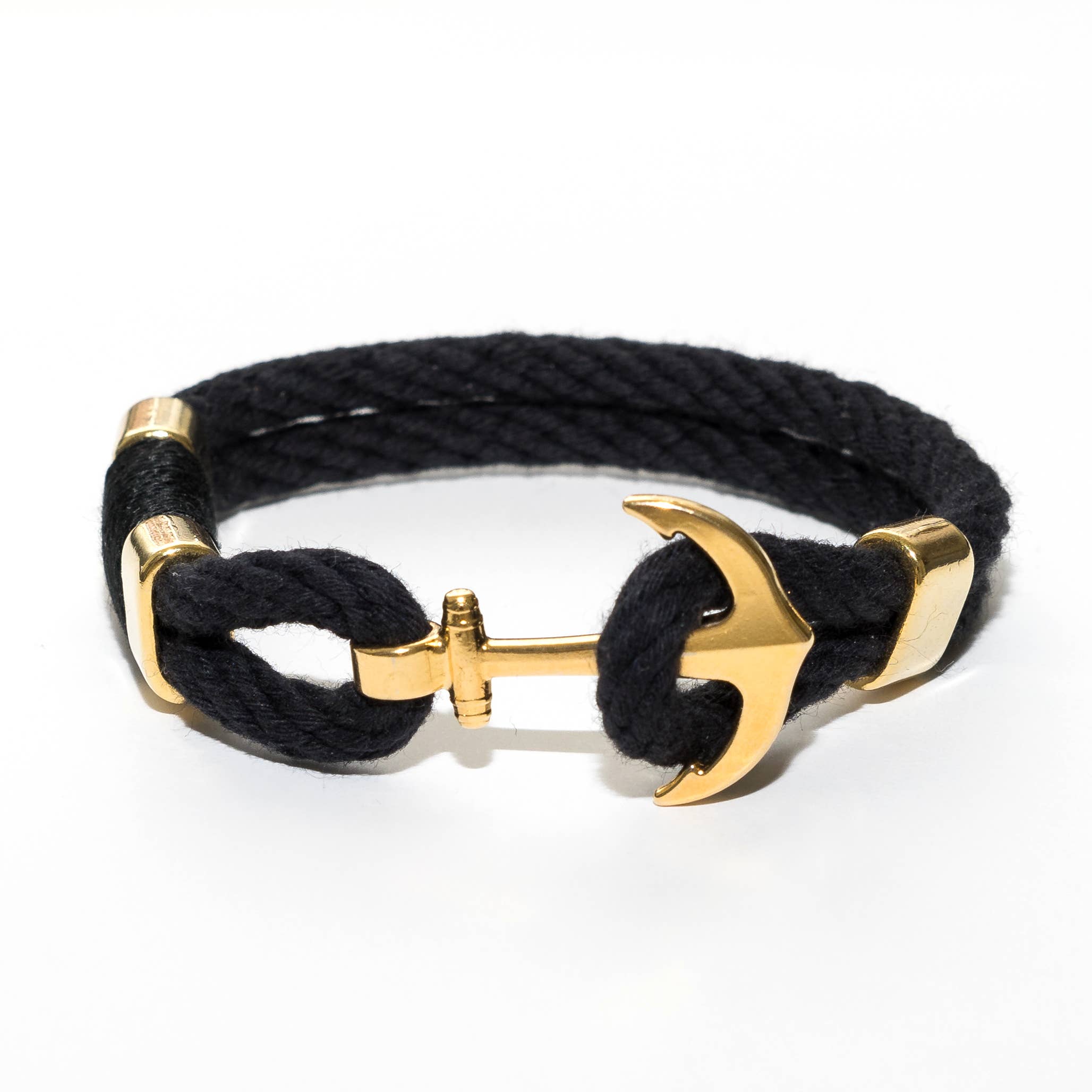 Waverly - Black/Black/Gold - Nautical Rope Anchor Bracelet