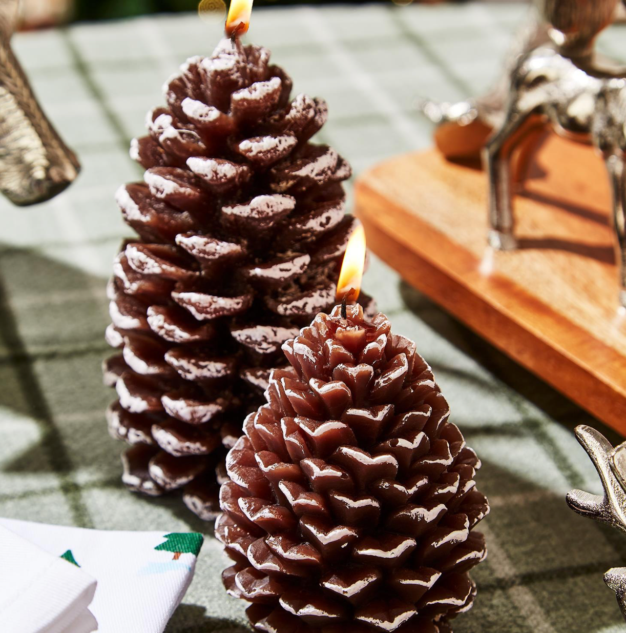 These intricately sculpted pine cone candles look exactly like the real thing, down to the hand-painted, snowy detail. Display on your table or mantle for a nature-inspired look that brings the outside into your home.