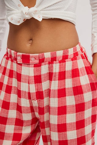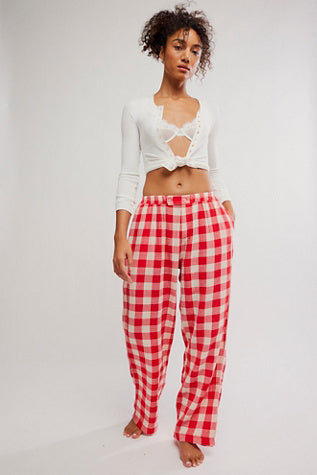 These adorable woven pants from Intimately feature an ultra-soft, textured cotton fabrication, contrast stitching details, and side pockets for a cozy, loungewear style you’ll reach for again and again.