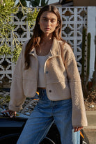 Woven Polyester Sherpa Turtleneck Long Sleeve Bomber Jacket with Polyester Suede Lining