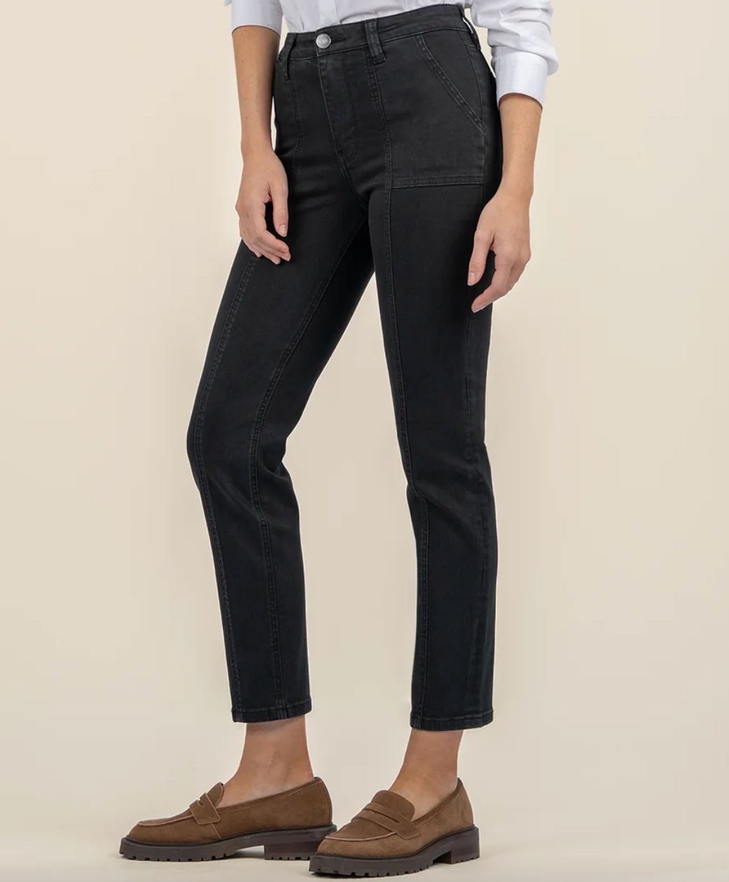 - A classic style, these straight-leg jeans feature artistic fading and Fab Ab front pockets that comfortably flatten and shape.