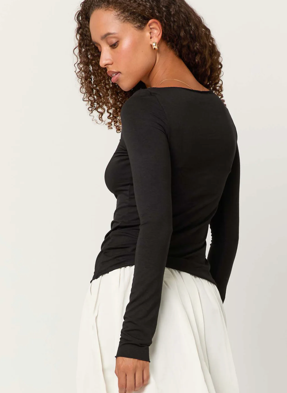 The Vera Boat Neck Long Sleeve features a flattering boat neckline and a buttery soft jersey fabric that hugs you just right. With delicate hemline stitching and a fitted silhouette, this long sleeve is as versatile as it is comfortable. Whether you're dressing it up with trousers or going casual with jeans or a midi skirt, this top’s got you covered.