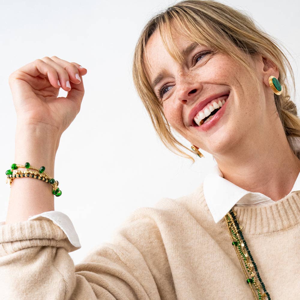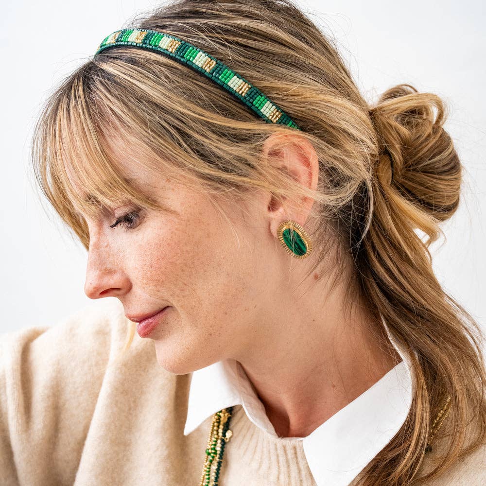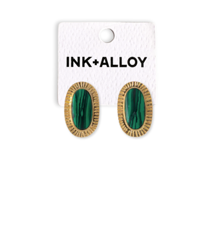 Daphne Oval Synthetic Malachite Stone Post Earrings