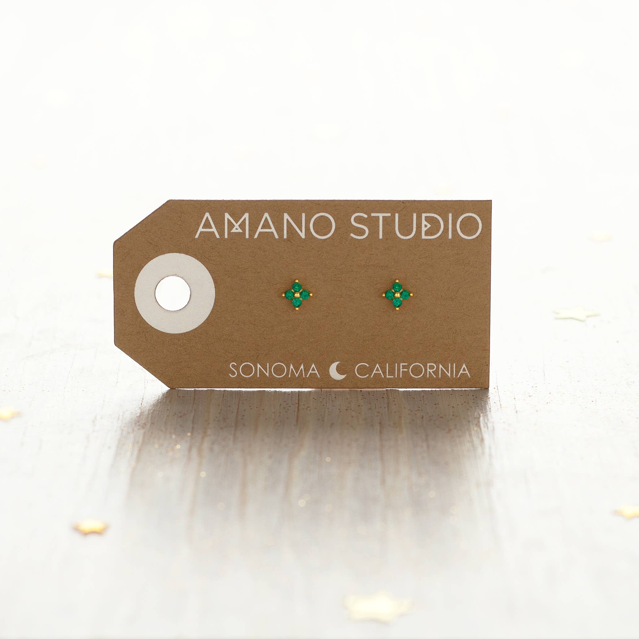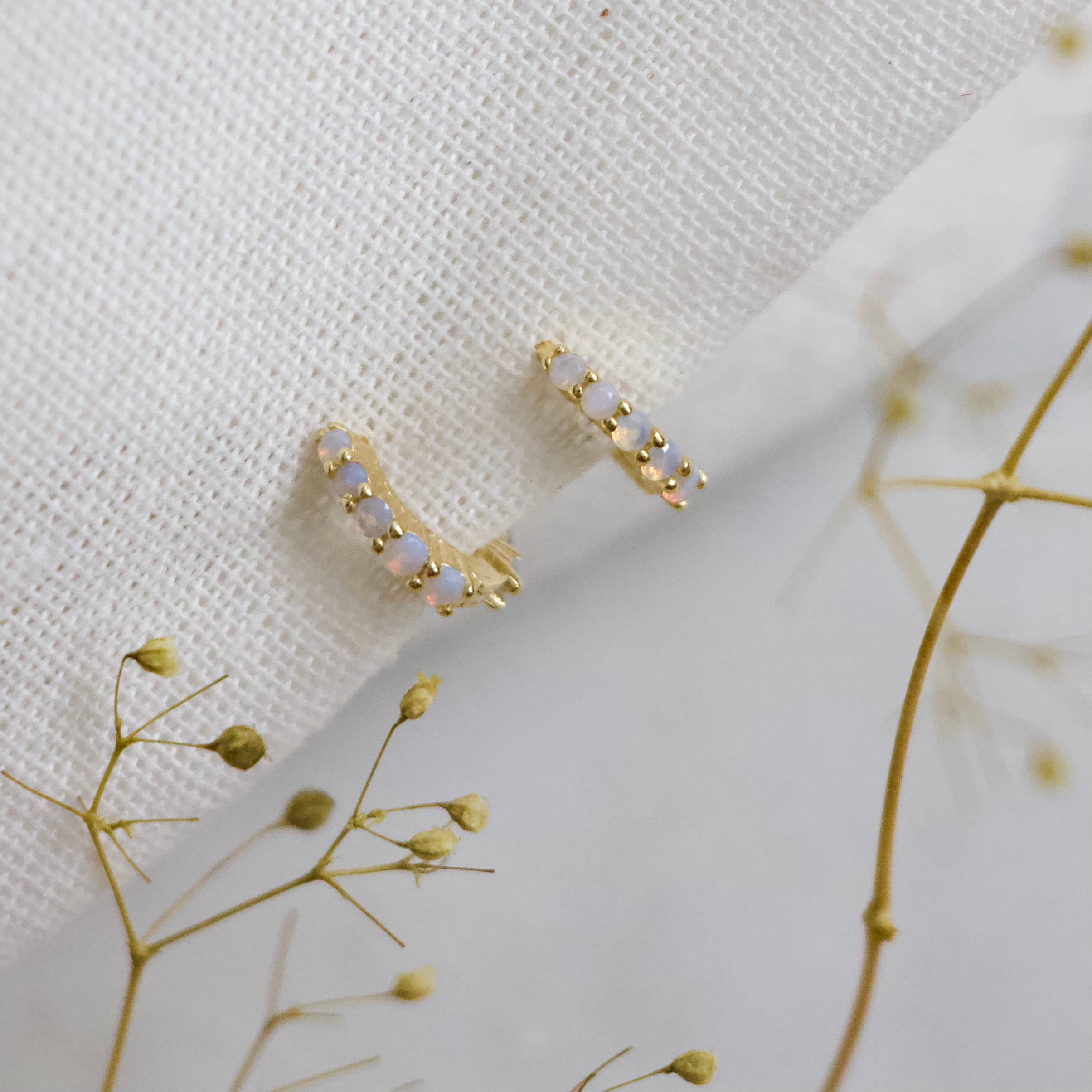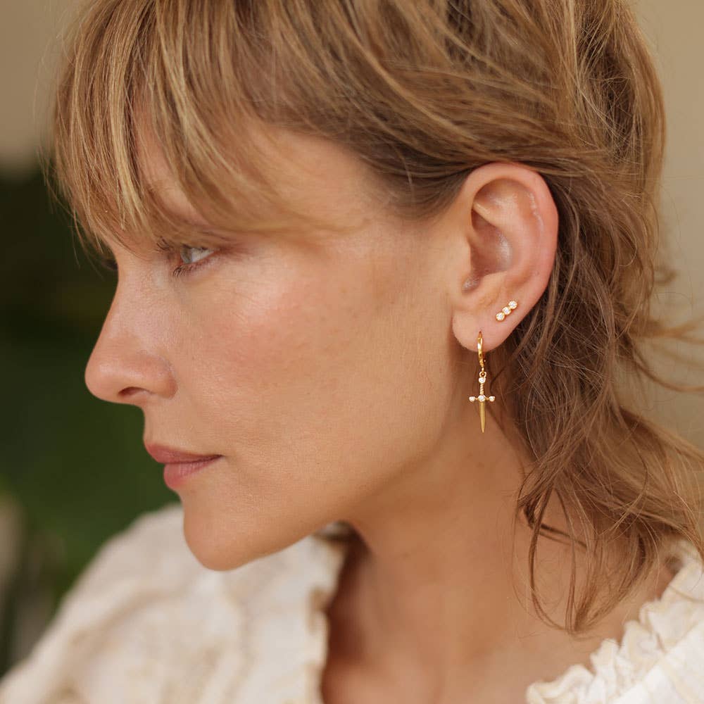 Emerald Green + Crystal Baguette Huggie Hoop Earrings