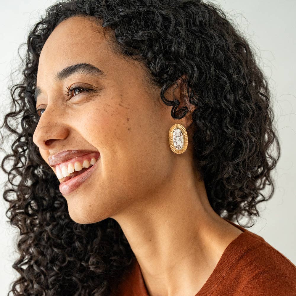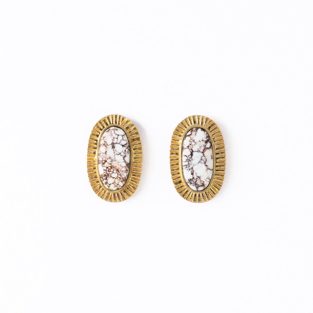 Daphne Oval Wild Horse Jasper Stone Post Earrings