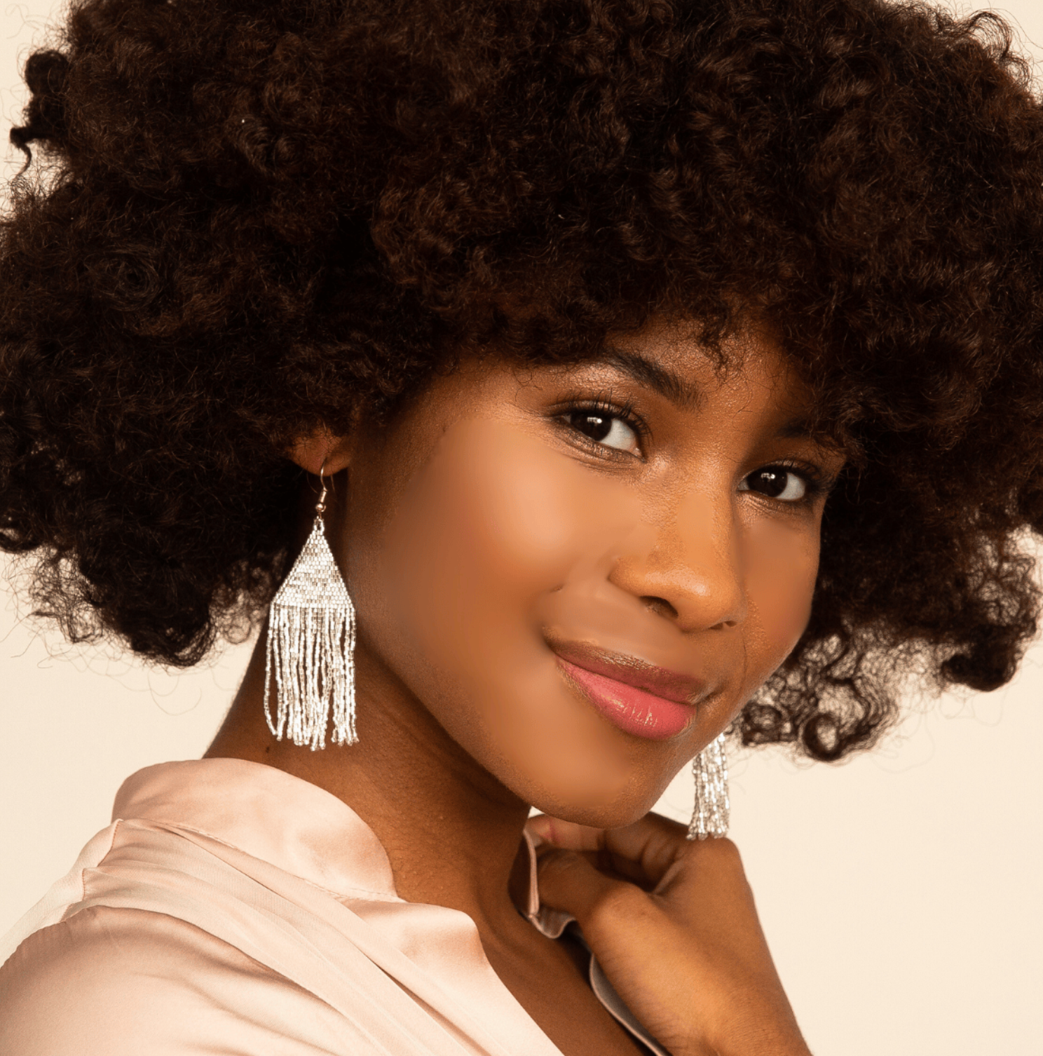 Delilah Zebra Print Bronze + Ivory Beaded Fringe Earrings