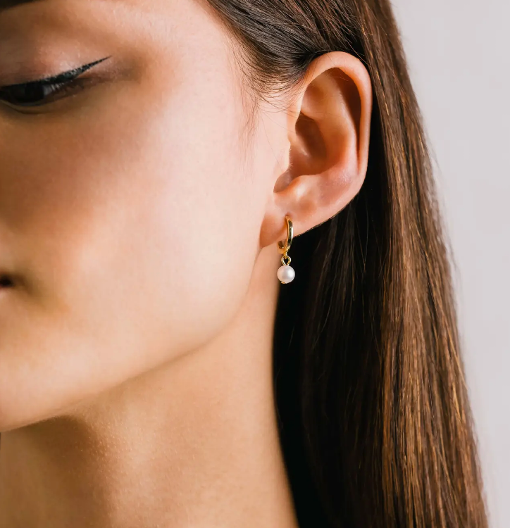 Amari Pearl Huggie Drop Hoop Earrings
