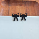 Black Glitter Bow Stud Earrings