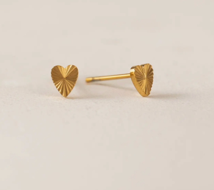 These petite hearts catch the light with fluted texture, delivering a hint of sparkle and a lot of charm in a size that feels sweet, subtle, and ready for daily wear. Fluted Heart Stud Earrings are crafted from 316L stainless steel with 18K Gold PVD for durable color and shine. Waterproof, tarnish proof, and hypoallergenic, they’re comfortable for sensitive ears and built for a grab-and-go routine. Perfect as a meaningful everyday stud for teens to adults, self-gifters, and shoppers seeking a small, versatile earring that layers beautifully. Key Features: • 4 x 5mm heart silhouette with fluted texture for extra shine • Waterproof, tarnish proof finish supports active lifestyles • Hypoallergenic 316L stainless steel safe for sensitive ears • Lightweight scale ideal for second piercings and stacked looks • Easy gift choice with broad age and style appeal Construction & Materials: • Made in: China • Materials Used: 316L stainless steel, 18K Gold PVD • Dimensions: 4 x 5mm • Care: Clean with a soft cloth; store in pouch to prevent scratches