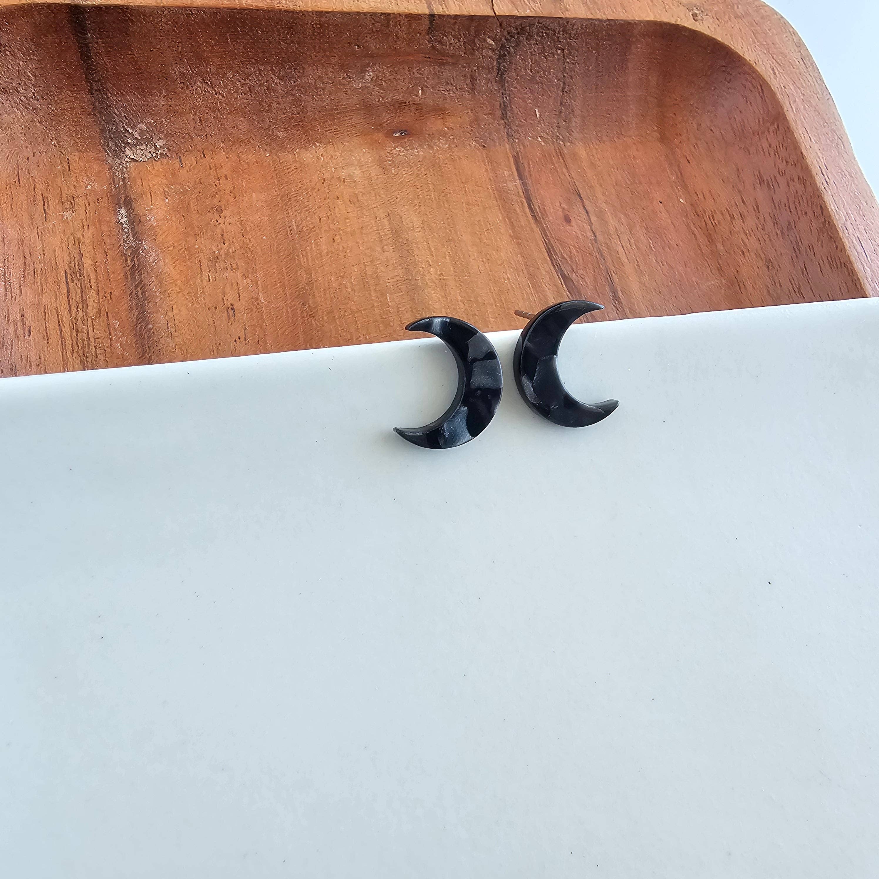 These moon-shaped earrings will add some celestial charm to any outfit. Reach for the stars and make a statement with these playful accessories. (One small step for fashion, one giant leap for style!) * Hypoallergenic stainless steel * Lightweight and durable plant-based acetate acrylic