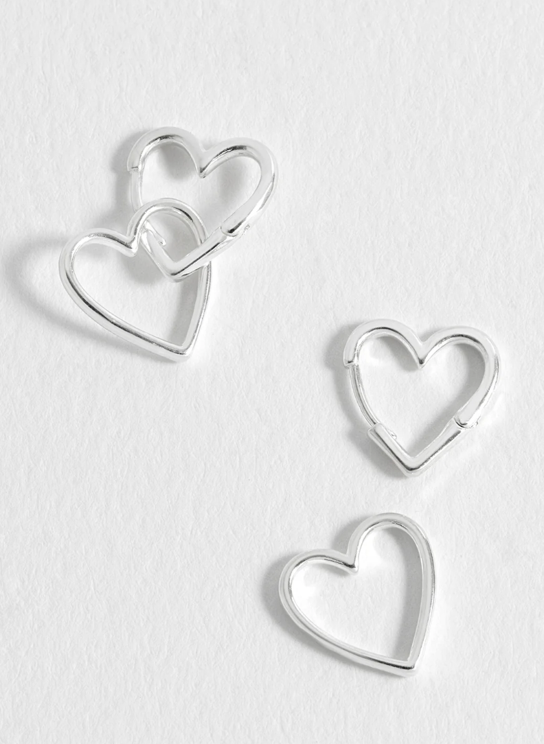 Double the love with our silver-plated Double Heart Hoops. A twist on the classic hoop earring, these heart-shaped hoops can be worn with or without the removable heart charms, offering you multiple styling options.