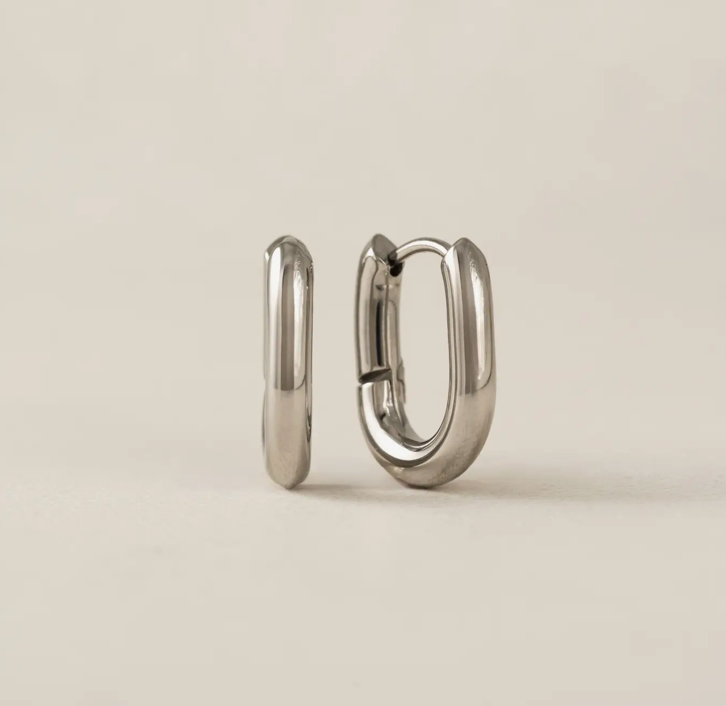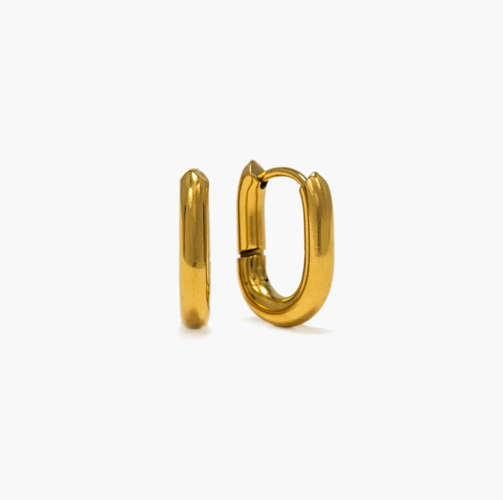 The Small Paperclip Hoop Earrings deliver a clean, modern take on everyday hoops, combining a sculptural silhouette with a polished finish that feels current, versatile, and easy to wear. The Small Paperclip Hoop Earrings are crafted from 316L stainless steel and 18K gold PVD, featuring a compact paperclip-inspired oval shape, measuring approximately 15 x 12 mm. Designed to offer subtle statement appeal with all-day comfort, these hoops sit securely on the ear and transition seamlessly from casual styling to elevated looks. Perfect as a refined everyday hoop for minimalist shoppers, fashion-forward customers, and gift buyers seeking a versatile gold or silver staple. Key Features: • Paperclip-inspired puffed hoop silhouette with smooth, high-polish finish • Compact 15 x 12 mm size ideal for daily wear • Secure hinged closure for easy on and off • Lightweight, hypoallergenic, and comfortable for extended wear Construction & Materials: • Made In: China • Materials Used: 316L Stainless Steel, 18K Gold PVD • Dimensions: 0.6 in (15 x 12 mm) • Finish Options: Gold PVD or Polished Stainless Steel • Care: Tarnish-resistant and easy to maintain with a soft cloth