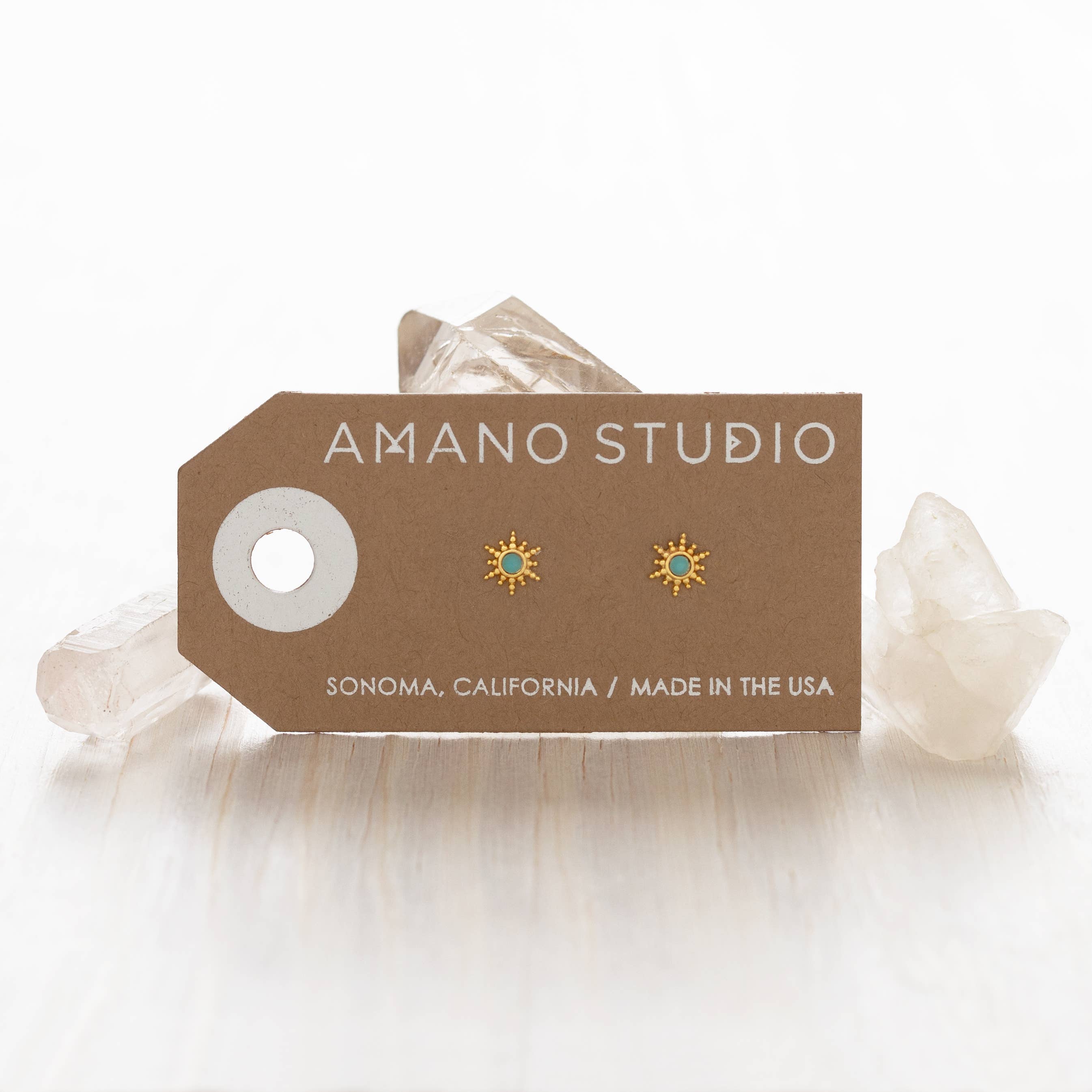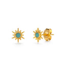 Inspired by the geometry of the cosmos, these little stars are bursting with rays light. They measure 6mm across. The have a 2mm Czech crystal. They are made of 14k gold plated brass (7-10 mil heavy gold). They are a perfect little gift, a minimalist statement or a great addition to an earring stack.