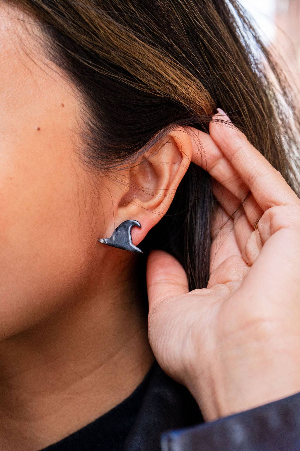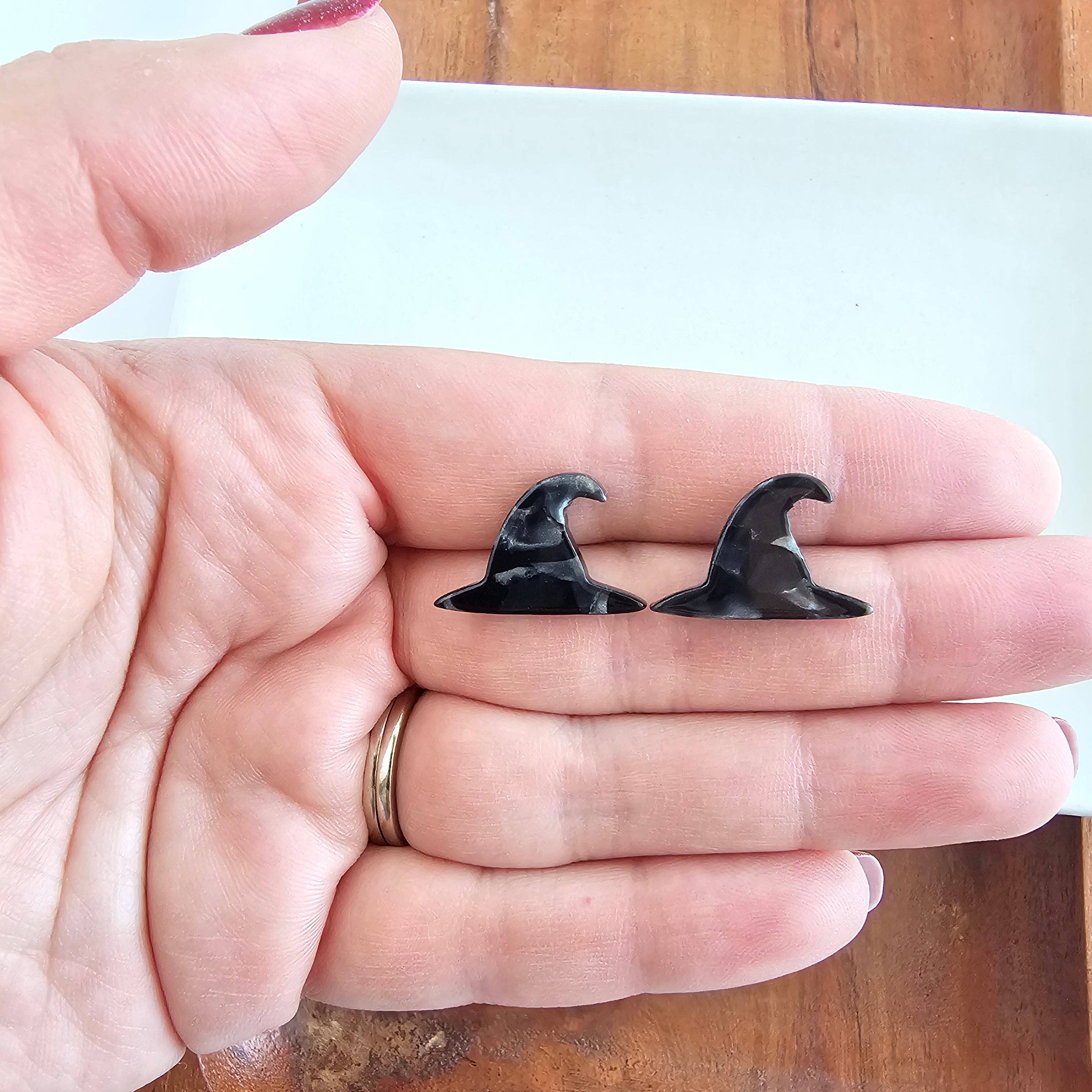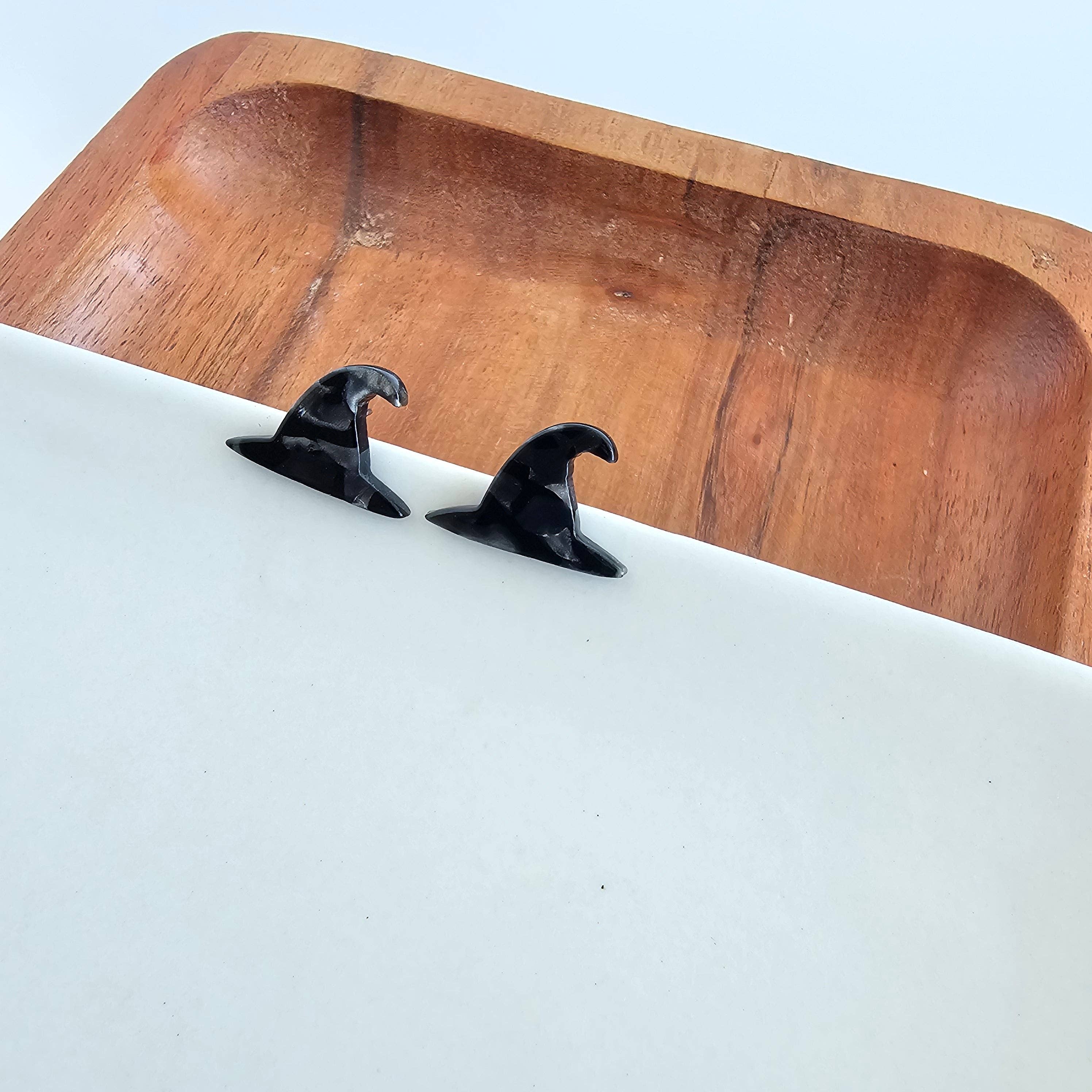 Add some spookiness to your style with these witch hat stud earrings! Made from black acrylic and shaped like classic witch hats, these studs are perfect for Halloween witchy vibes. Accessorize with a touch of magic and whimsy! * Hypoallergenic stainless steel * Lightweight and durable plant-based acetate acrylic MSRP $15