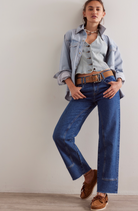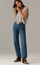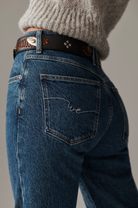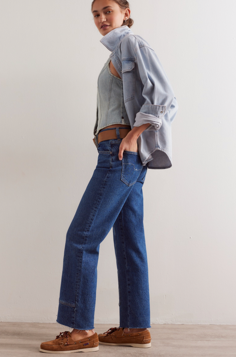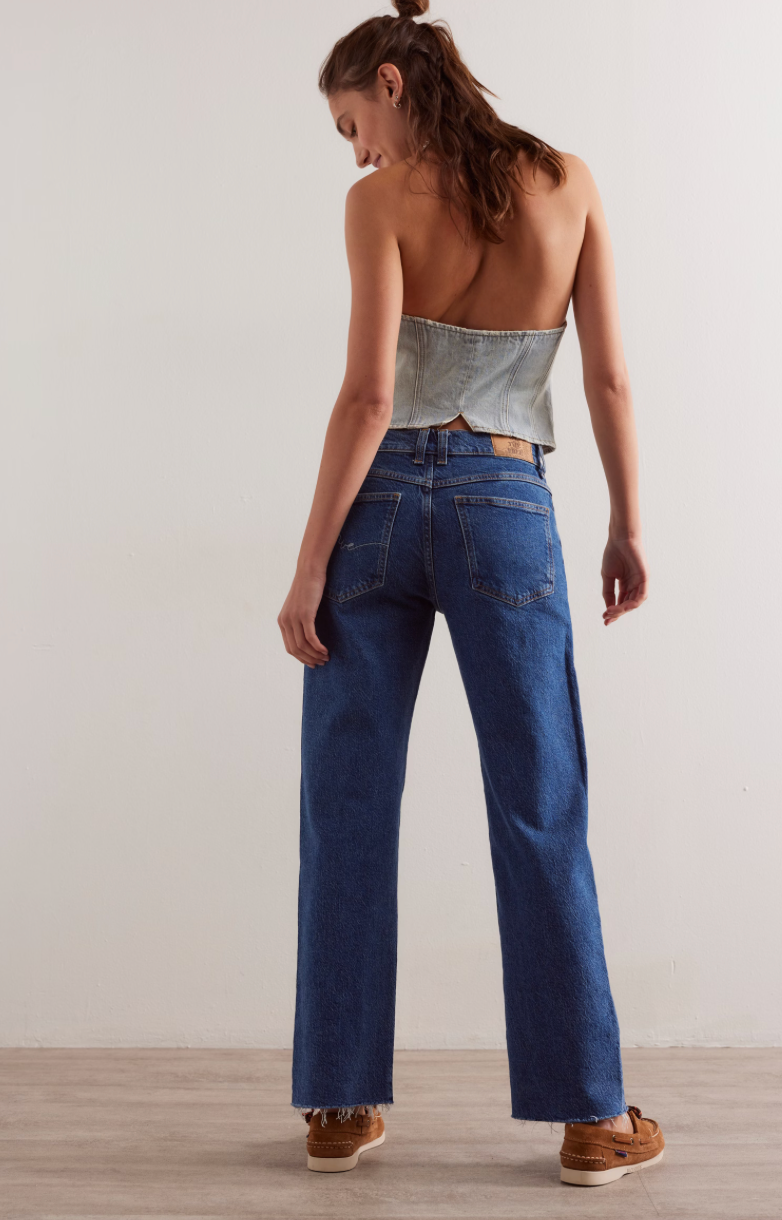Fit: Mid-rise, true straight silhouette with semi-rigid denim
