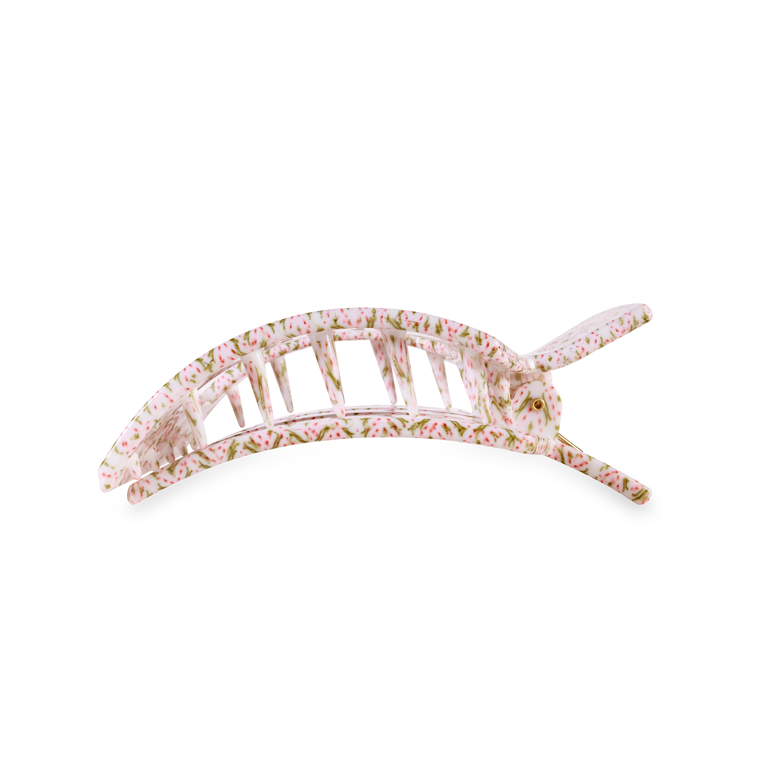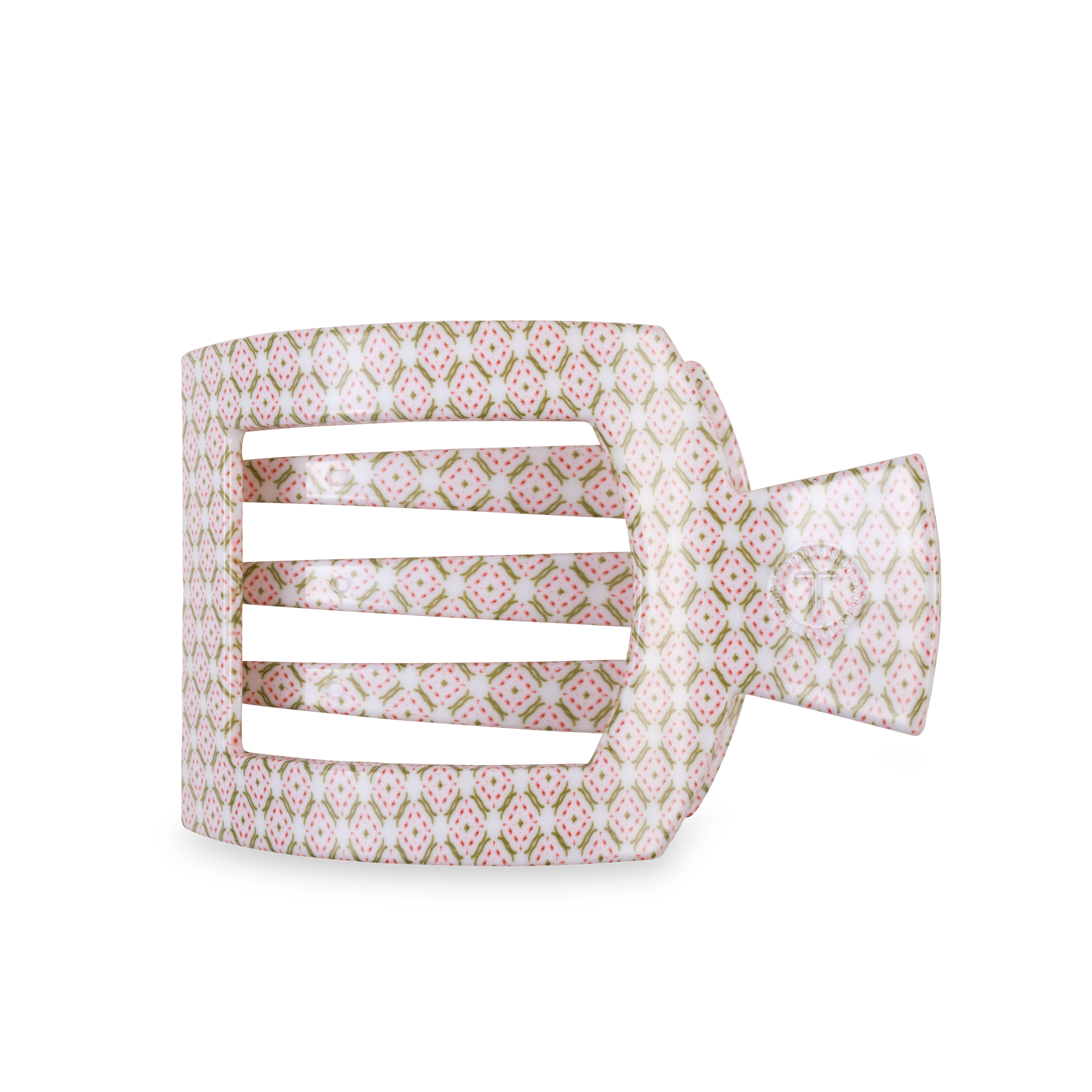 Lay flat and relax with the Pine & Pearl Large Flat Square Hair Clip in Pink. The TELETIES x Laura Park Holiday Collaboration features bold, playful designs that combine Laura’s vibrant art with TELETIES signature function—perfect for any look!