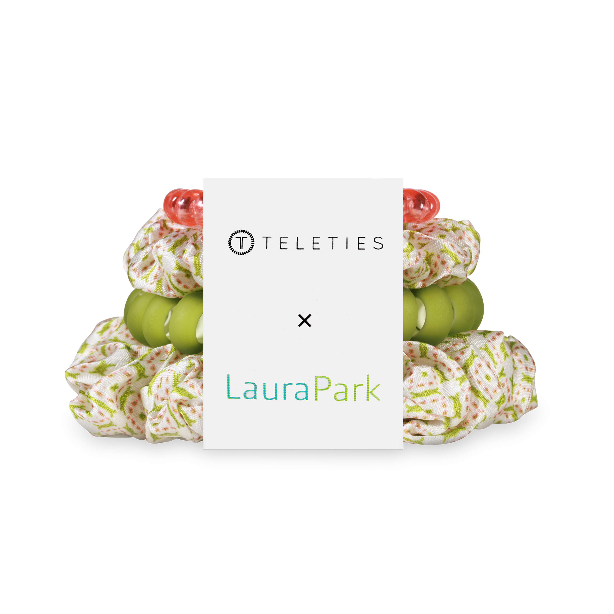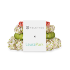 Pine & Pearl Mix Pack Hair Ties in Green, Red, and White offer a strong grip without damage, doubling as a stylish bracelet when not in use. The TELETIES x Laura Park Holiday Collaboration features bold, playful designs that combine Laura’s vibrant art with TELETIES signature function.