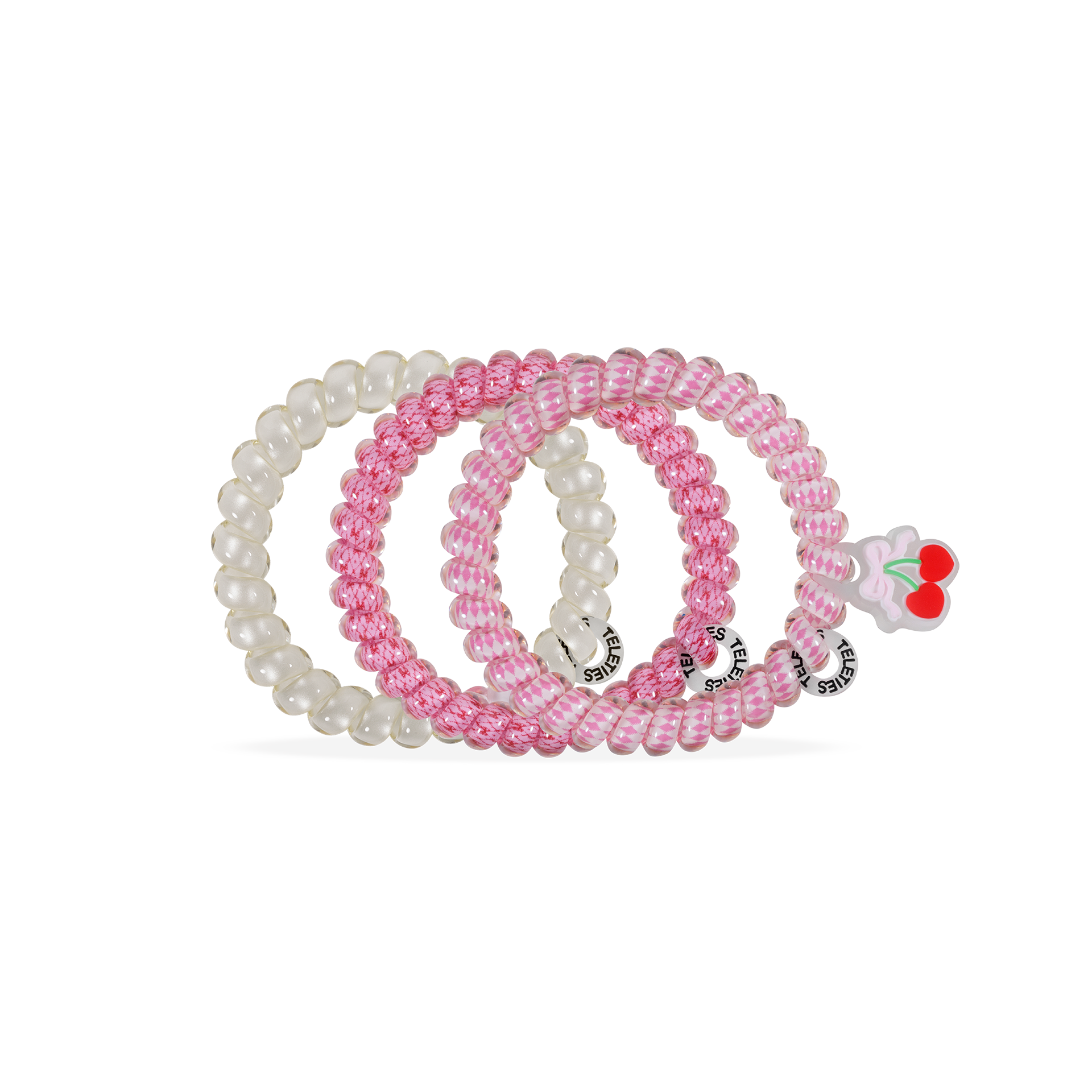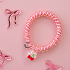 Cherry Bomb Small Hair Ties in Pink offer a strong grip without damage, doubling as a chic wrist accessory when not in use. Your new favorite hair essentials all year round. Strong grip, no rip design for all-day hold Doubles as a stylish bracelet Durable and waterproof for all occasions Gentle on hair—prevents breakage, headaches, and creases Sold in packs of three.