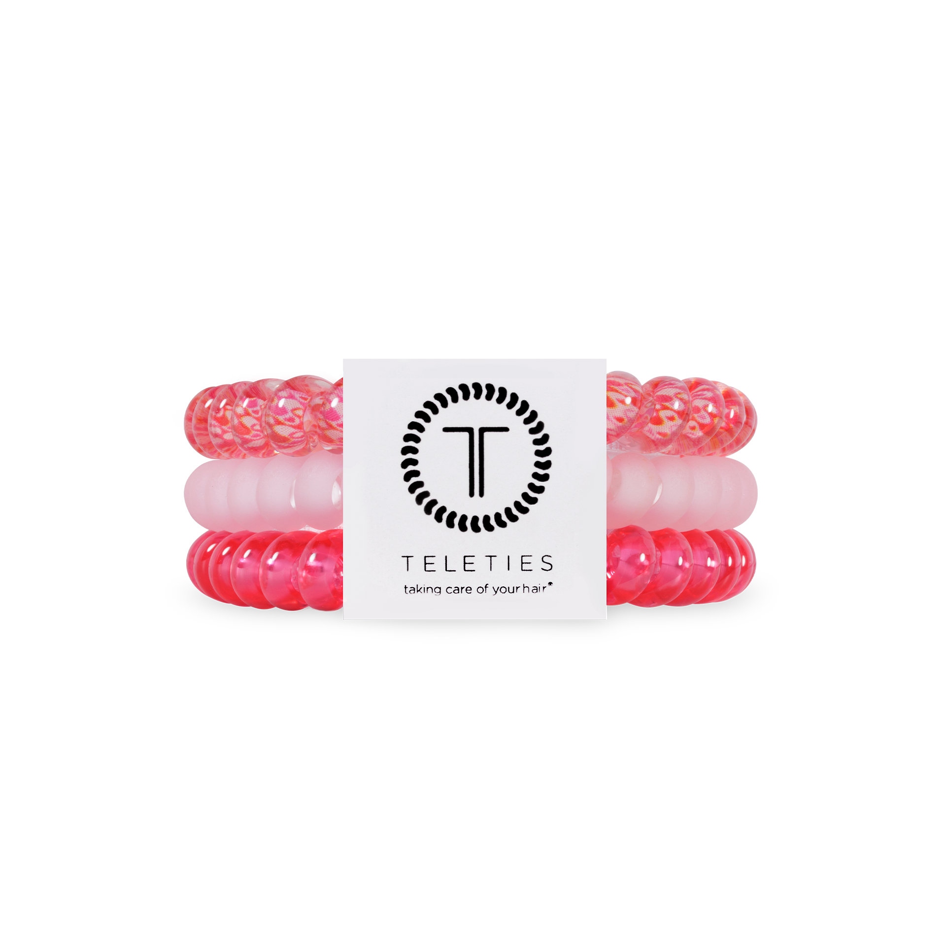Love You, Mean It! Small Hair Ties in Pink offer a strong grip without damage, doubling as a chic wrist accessory when not in use. Your new favorite hair essentials all year round. Strong grip, no rip design for all-day hold Doubles as a stylish bracelet Durable and waterproof for all occasions Gentle on hair—prevents breakage, headaches, and creases Sold in packs of three.