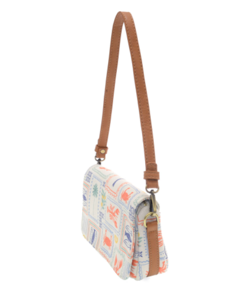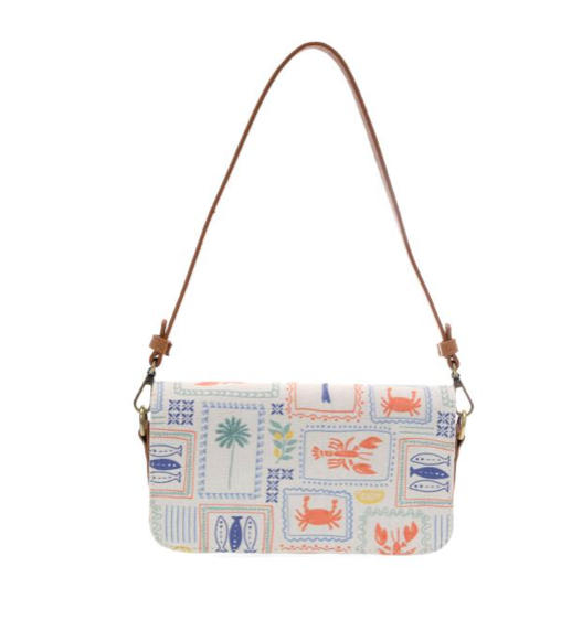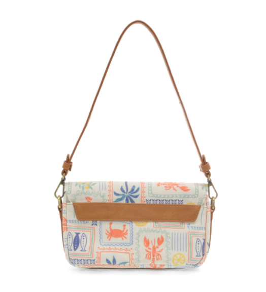 MEET YOUR NEW SUMMER BFF! THIS COMPACT FLAP SHOULDER BAG IS DESTINED TO BECOME YOUR NEW FAVORITE BAG OF THE SUMMER. CRAFTED IN OUR BEST-SELLING WASHED CANVAS IN OUR NEW SEA LIFE PRINT FEATURING LOBSTERS, CRABS AND SEASHELLS, THIS PETITE BAG HAS A FLAP CLOSURE AND A TOP ZIP CLOSURE TO KEEP ALL YOUR BELONGINGS SAFELY STOWED. CARRY IT AS A SHORT SHOULDER BAG WITH THE INCLUDED VEGAN SHORT LEATHER SHOULDER STRAP OR SWITCH IT WITH THE INCLUDED LONGER ADJUSTABLE STRAP WHEN YOU WANT TO WEAR AS A CROSSBODY AND GO HANDS FREE.