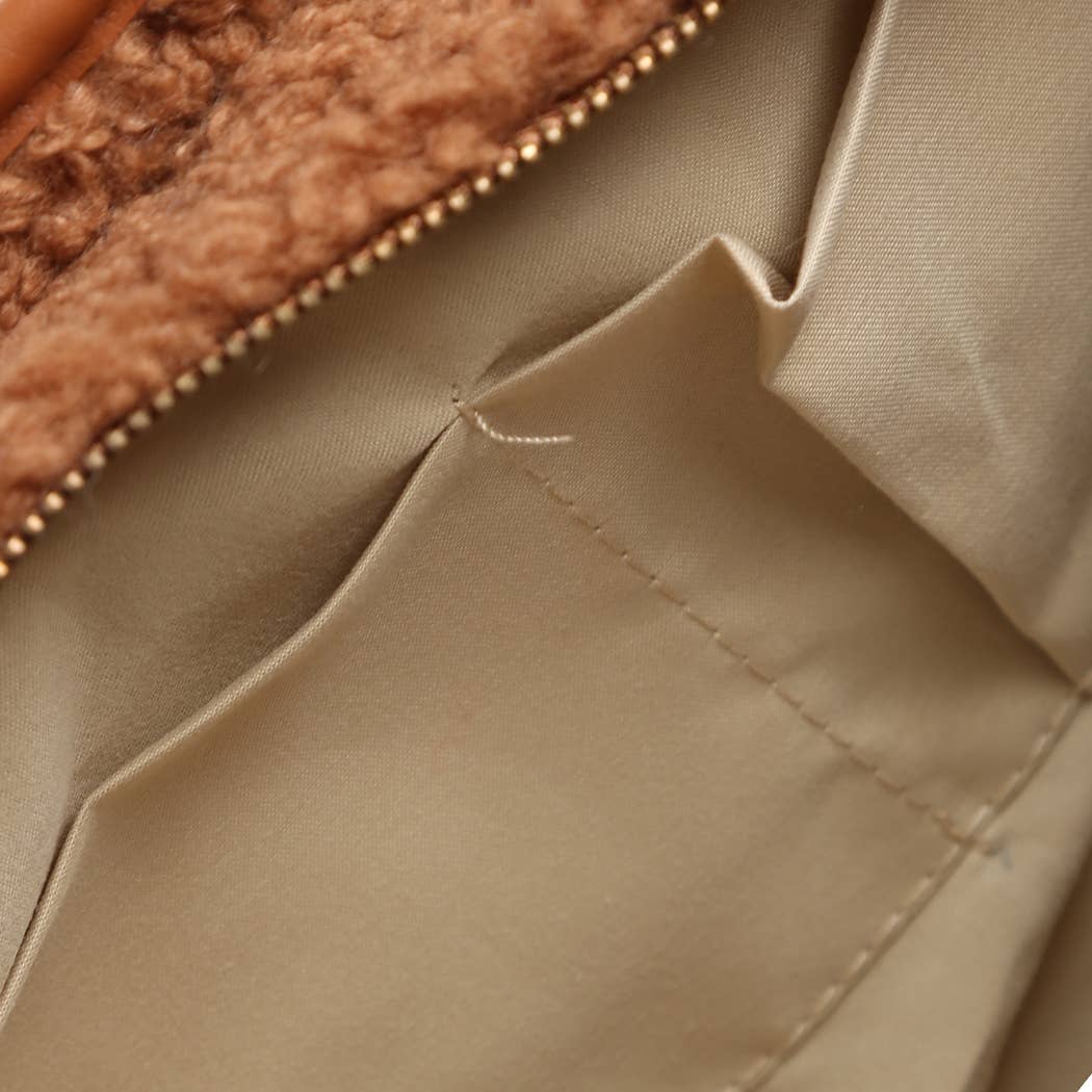 Solid Color Sherpa Shoulder Tote Bag - Plain Minimalist Design - Dual Top Handles - zipper closure, detachable & adjustable strap, and interior pockets - Made by 100% Polyester ** Size: 20.5"(L) x 4"(W) x 18"(H) ** Stay stylish and cozy with this faux shearling shoulder tote bag, available in classic Camel and Black. Designed with a plush, textured exterior and smooth faux leather trim, this bag blends comfort and elegance effortlessly. Dual top handles and a detachable crossbody strap offer versatile carrying options, while the spacious interior makes it perfect for daily essentials. Lightweight yet durable, it’s ideal for casual outings, travel, or seasonal looks. A timeless accessory that balances practicality and fashion, keeping your essentials organized in chic style.