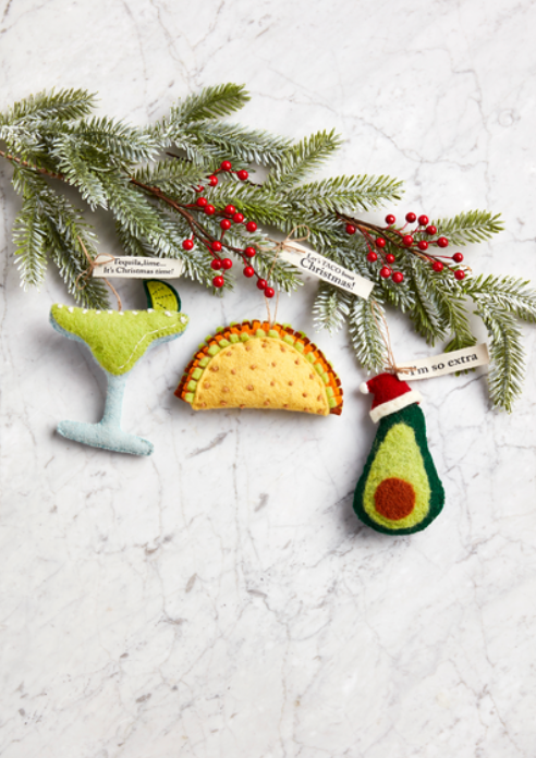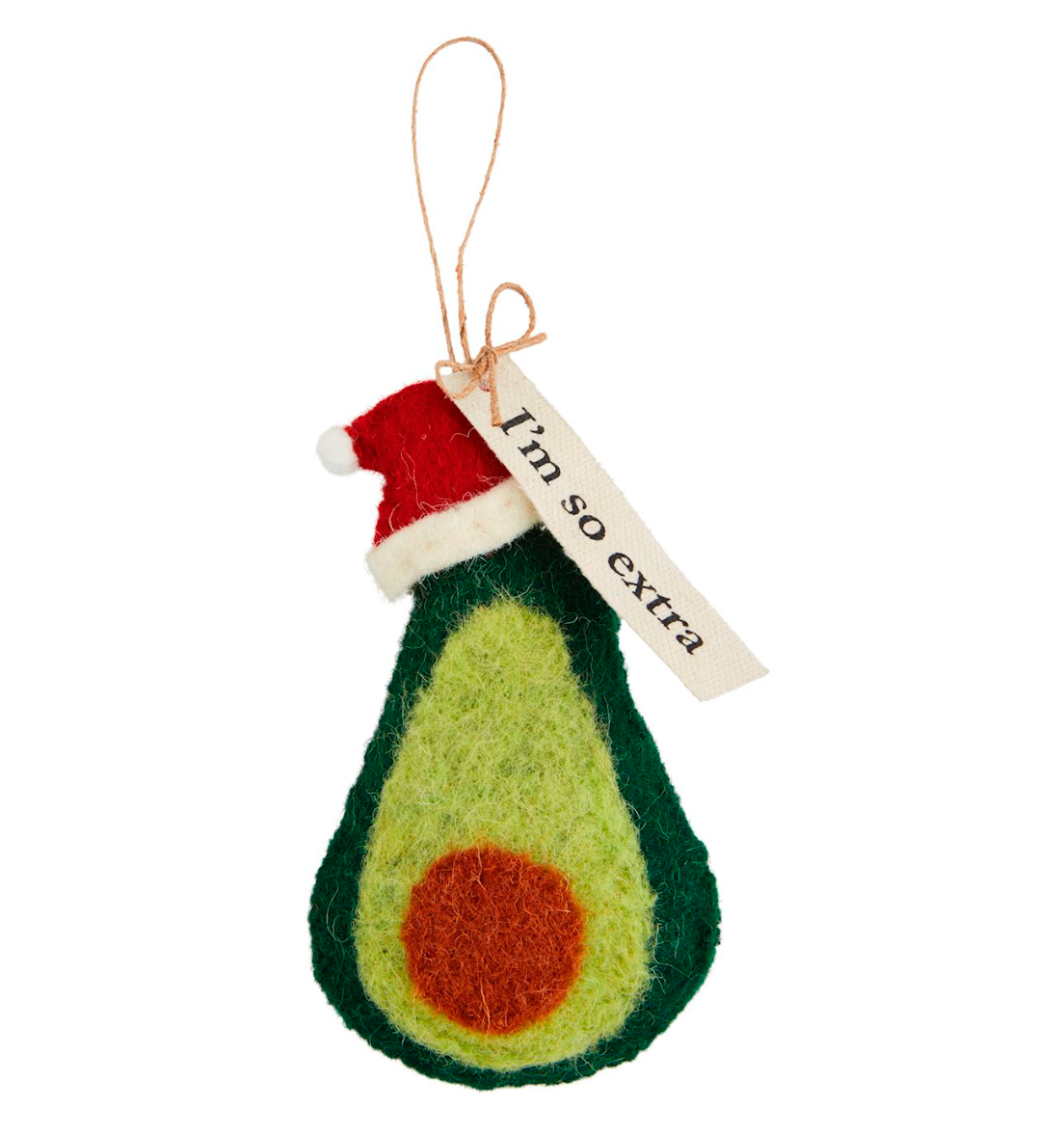 The Avocado Ornament is a delightful addition to your holiday decor. Crafted from high-quality felted wool, this stuffed ornament showcases intricate detailing and vibrant colors. Measuring 5" in height and 3 1/4" in width, it is the perfect size to hang on your Christmas tree or adorn your mantel. The lifelike design of this avocado ornament is sure to bring a touch of whimsy and charm to any space. Whether you are an avocado lover or simply appreciate unique and quirky decorations, this ornament is a must-have. Add a playful and festive touch to your home with the Avocado Ornament.