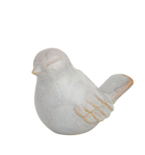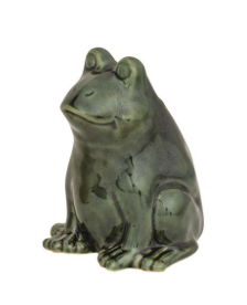 Figural stoneware bud vase with reactive crackle glaze finish.