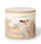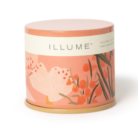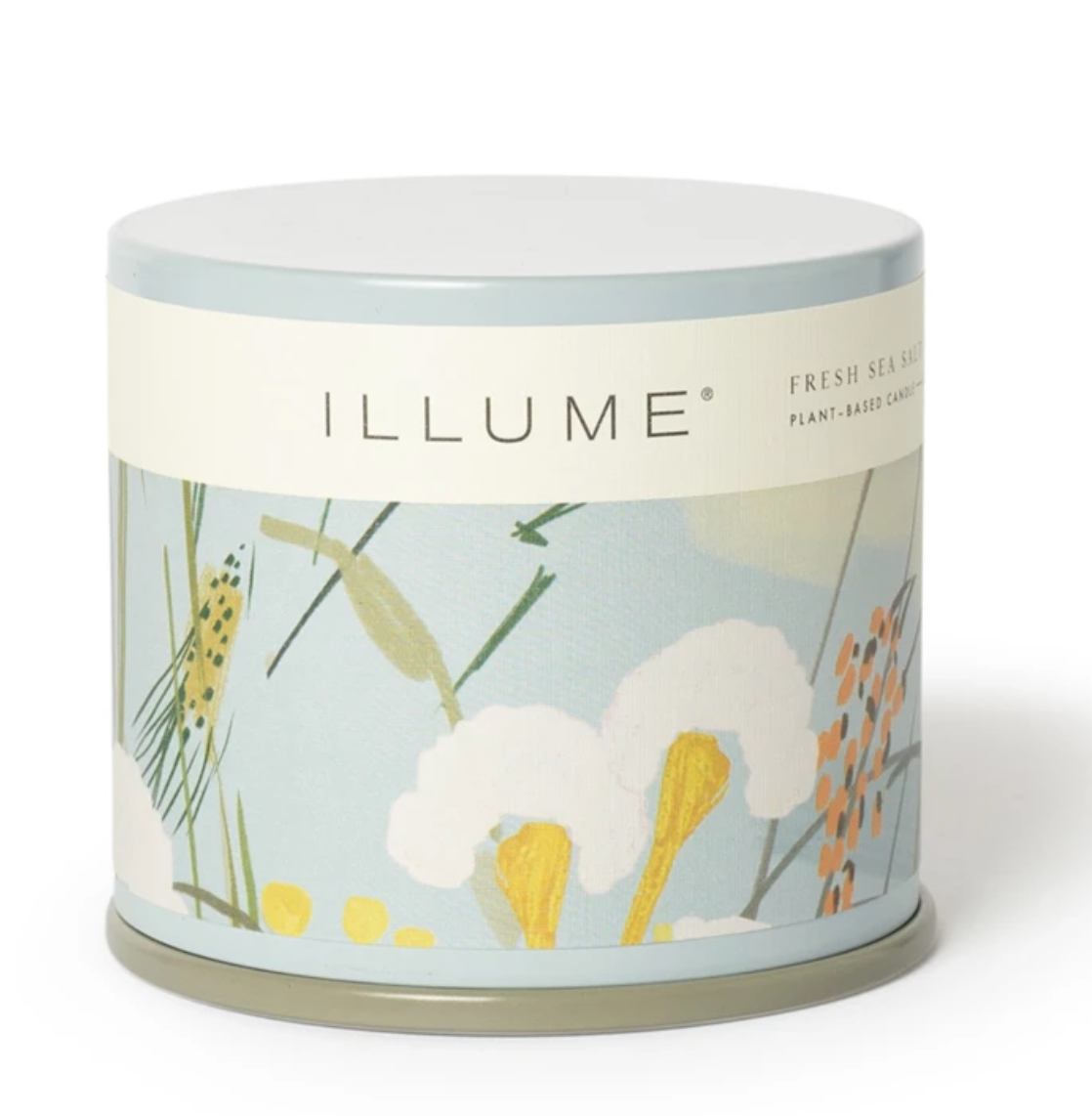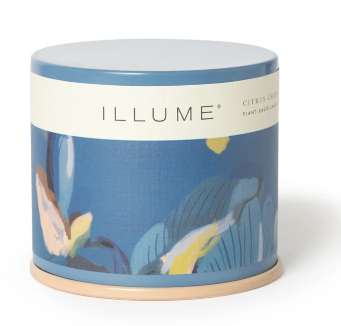 Designed as a pop of pattern, our large vanity tins have a full wrap label on textured stock, interior pattern with metallic details, and a color rolled edge to complement the colored wax. We use tin for its lovely illuminating qualities and because it is infinitely recyclable.