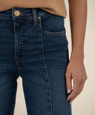 • Elevate your look with these high-rise ankle flare jeans in a rich dark wash. Designed with a wide hem and striking front seams, they feature our signature Fab Ab pockets and a touch of stretch for comfort and flattering fit.