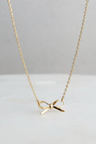Bow Necklace showcases a delicate bow charm, symbolizing elegance and grace. Crafted from premium stainless steel with 18K gold plating, this necklace is resistant to tarnish and designed for lasting shine. Its lightweight and versatile. Product Details: length: 16" Charm size: .5" ext: 2" ext clasp: Lobster Claw Metal finish: Stainless Steel 18K Gold product: Lead & Nickel Compliant anti-tarnish: Tarnish Free, Non-Tarnish