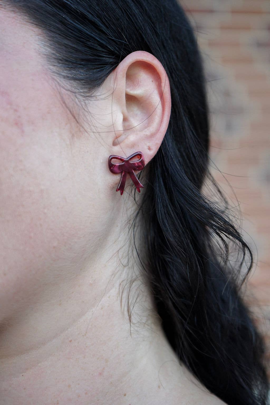 A Little Bow-mance Meet our new Bow Studs—a playful twist on a timeless silhouette. These adorable studs are perfectly sized to be your go-to for a touch of whimsy. Lightweight and comfortable enough for all-day wear, they add a charming detail to any outfit, from a casual tee to your favorite dress. Perfect for adding a sweet, feminine touch to your look, or for making a subtle statement on their own. ✨ Details: * Hypoallergenic stainless steel posts * Lightweight and durable plant-based acrylic * 3/4" tall Style Tip: These aren't just for special occasions! Pair these Bow Studs with a simple chain necklace and a cozy sweater for a polished everyday look. Or, let them shine by styling them with a slicked-back ponytail to really show them off.