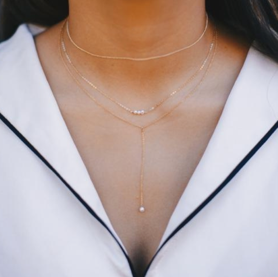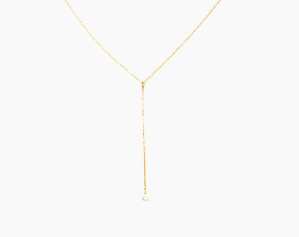 Length: 14" chain with a 1.5" extender and  2.25" drop with a pearl end.