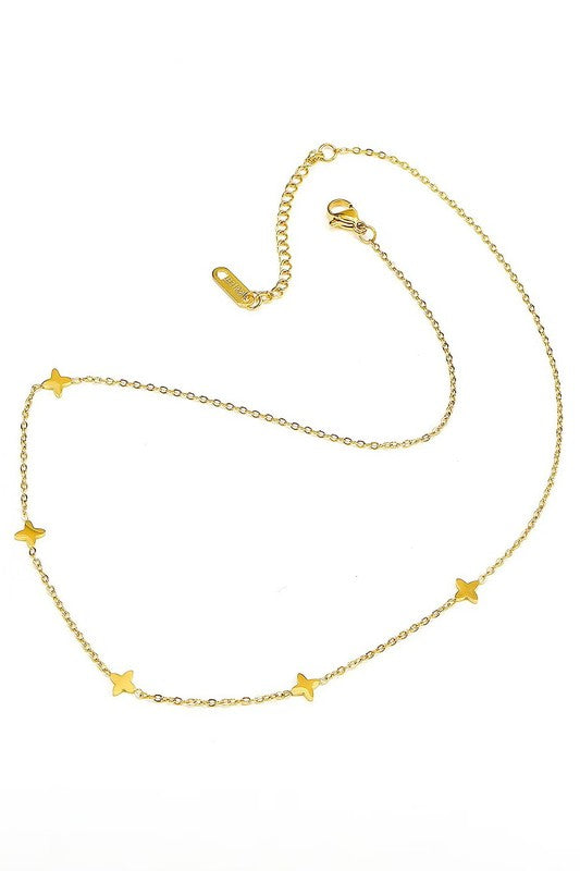 This necklace features a delicate mini cross pendant, crafted from high quality titanium steel that resists tarnishing, ensuring lasting shine and durability. Inspired by designer elegance. Product Details: length: 16" ext: 2" ext clasp: Lobster Claw Metal finish: Titanium Steel Gold product: Lead & Nickel Compliant anti-tarnish: Tarnish Free, Non-Tarnish