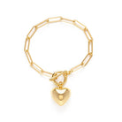 An 80's vintage inspired bracelet that is a classic: puff heart chain bracelet. Made of 14k gold plated brass + coated to resist tarnish.