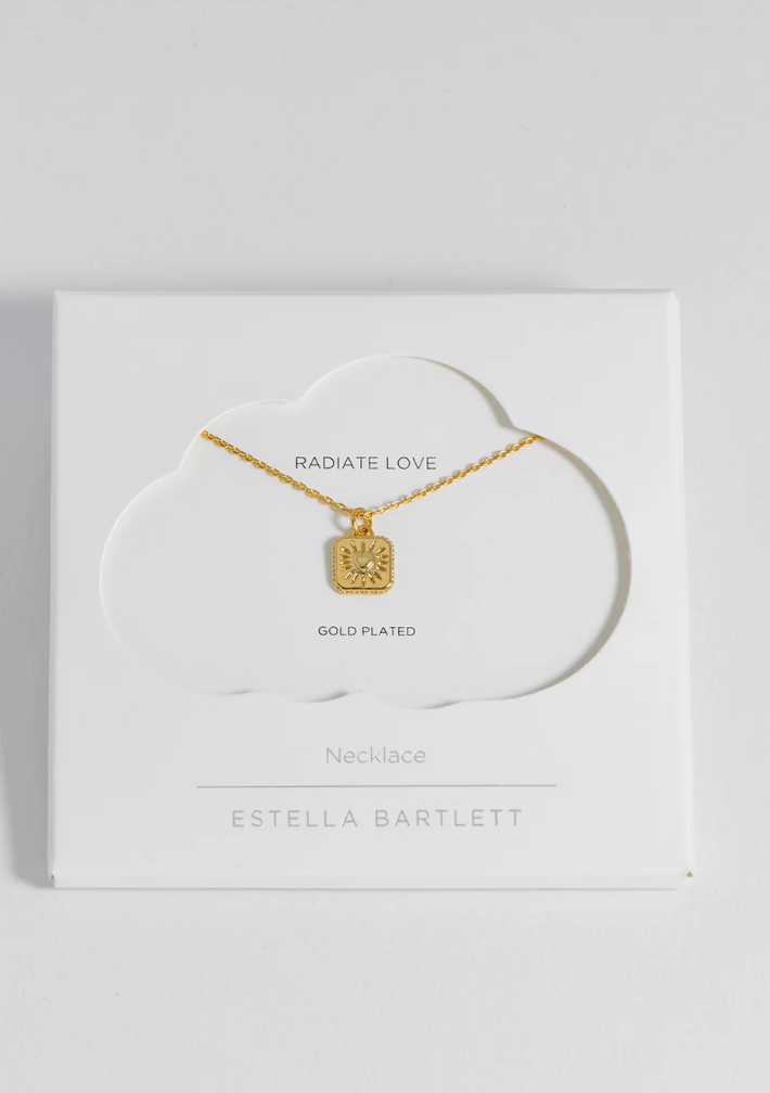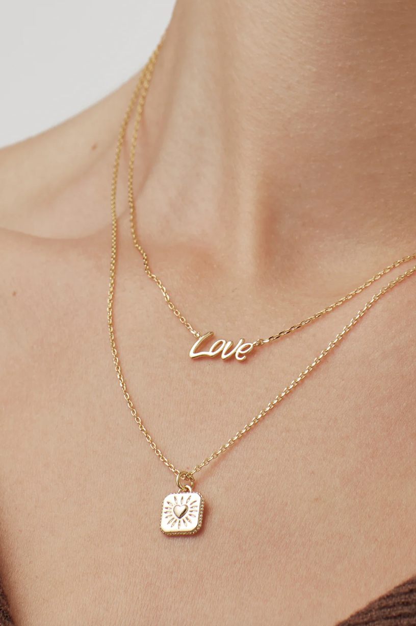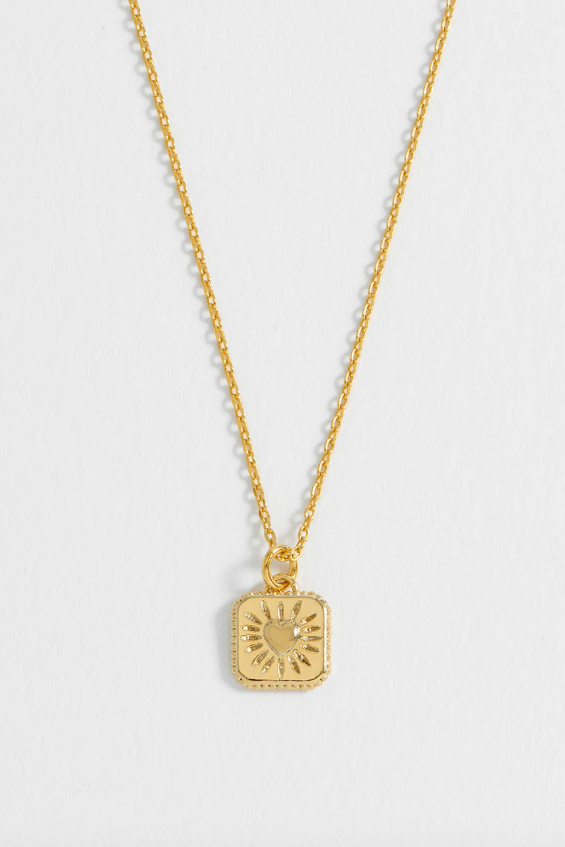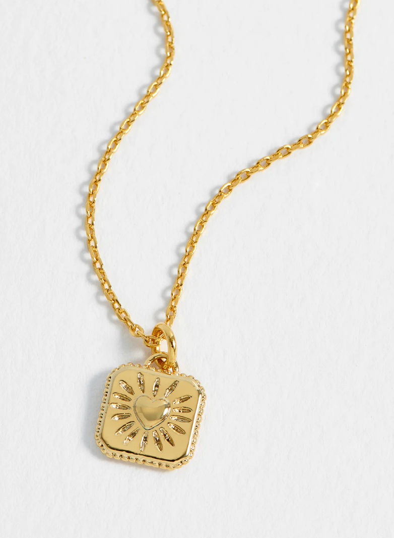 Radiate love with our Heart Tablet Necklace. Inspired by Mexican milagros, this gold-plated necklace features a dainty tablet pendant engraved with a radiating heart, making it a thoughtful gift for a special someone.