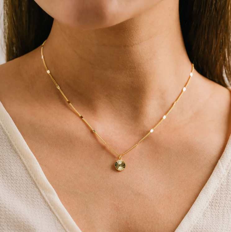 The type of necklace that you put on and never take off. The thin chain makes the Everly Circle Necklace an everyday essential (and perfect for layering). 16” chain, gold/silver-plated brass.