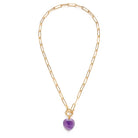 The paperclip trend is forecast to continue! This is a heavy paperclip chain with a toggle clasp and a pendant of a rose quartz heart or an amethyst heart. Three trend elements in one very cute necklace! Made of 14k gold plated brass + coated to resist tarnish and create a hypoallergenic surface.