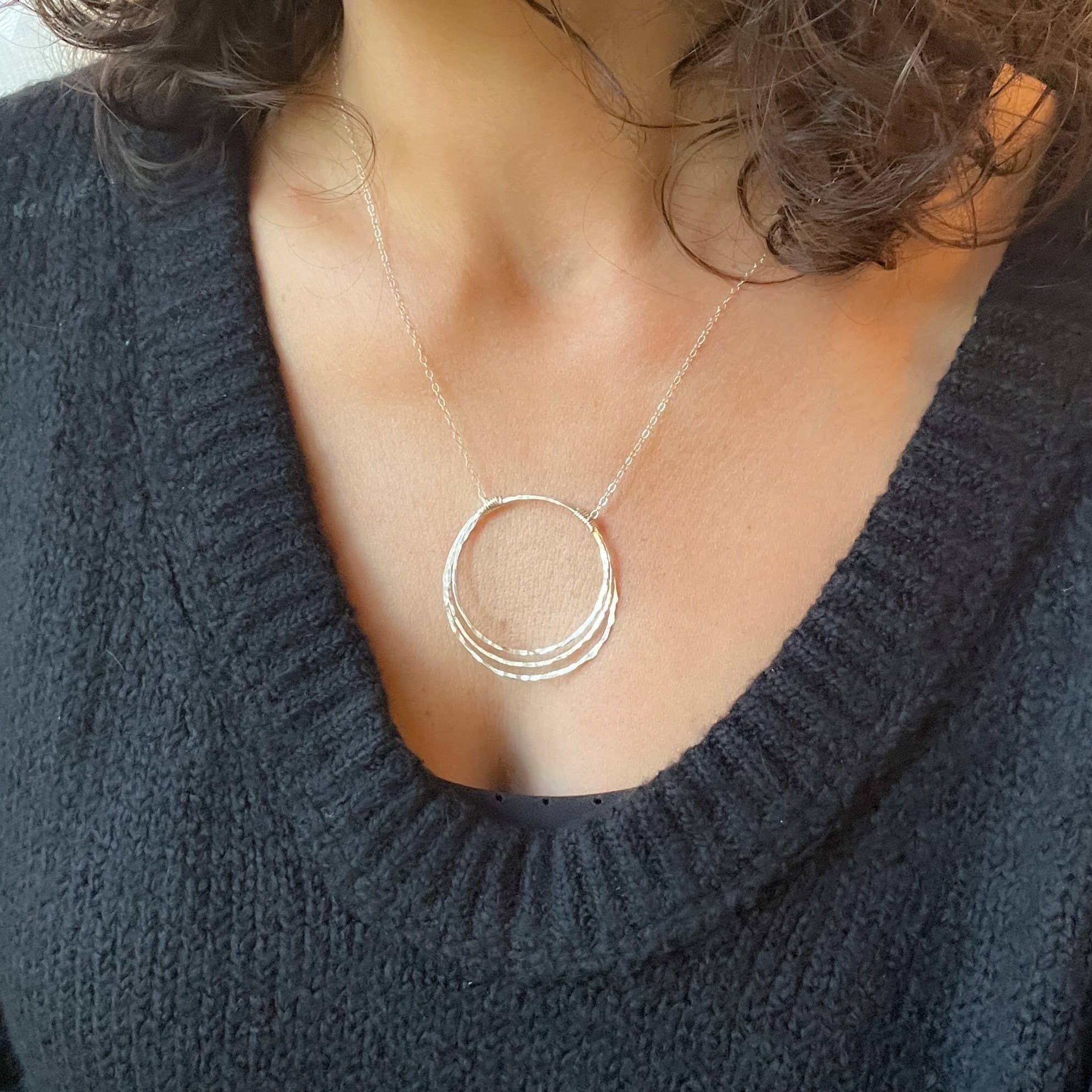 Triple Hammered Circle Necklace
