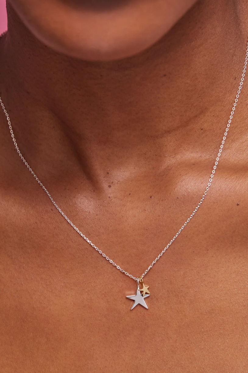 Did you know our hand drawn star charm originated from a doodle by our Creative Director Louise Bartlett? This delicate piece features a silver plated star alongside a smaller gold plated star. Previously featured in our sterling silver collection, the success of this design prompted us to create it within the main collection. This stunning Silver and Gold Star Necklace will perfectly accessorize your outfit and can be worn day or night. Treat your loved ones to this delicate silver and gold star necklace.