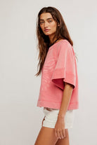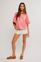 Vintage rose pullover with butterfly print. Short sleeve. 100% cotton.