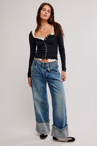 This crisp long sleeve from Intimately features a soft cotton fabrication, a subtle pointelle design, and a button-up front for an adjustable, cozy, everyday style.