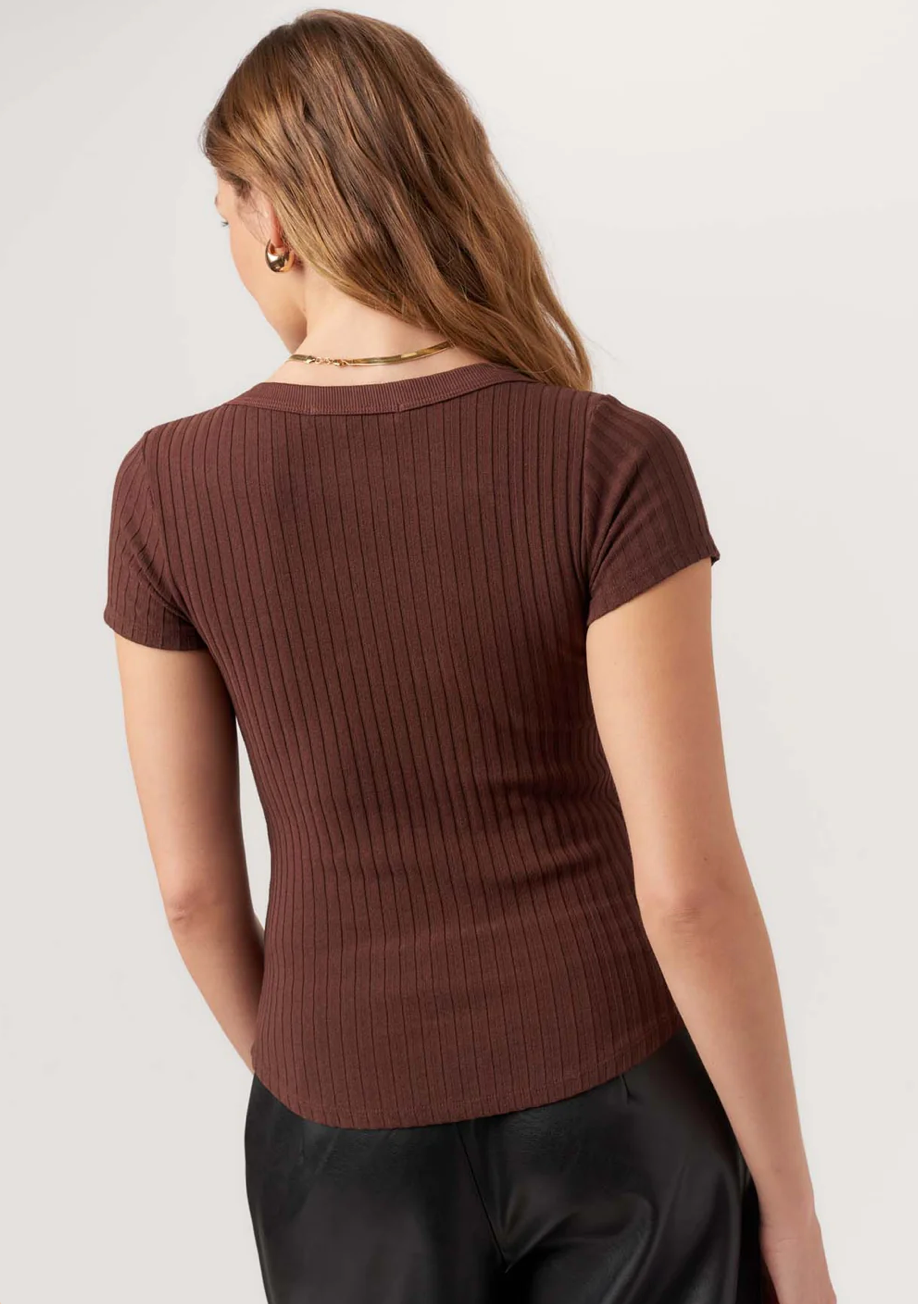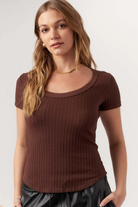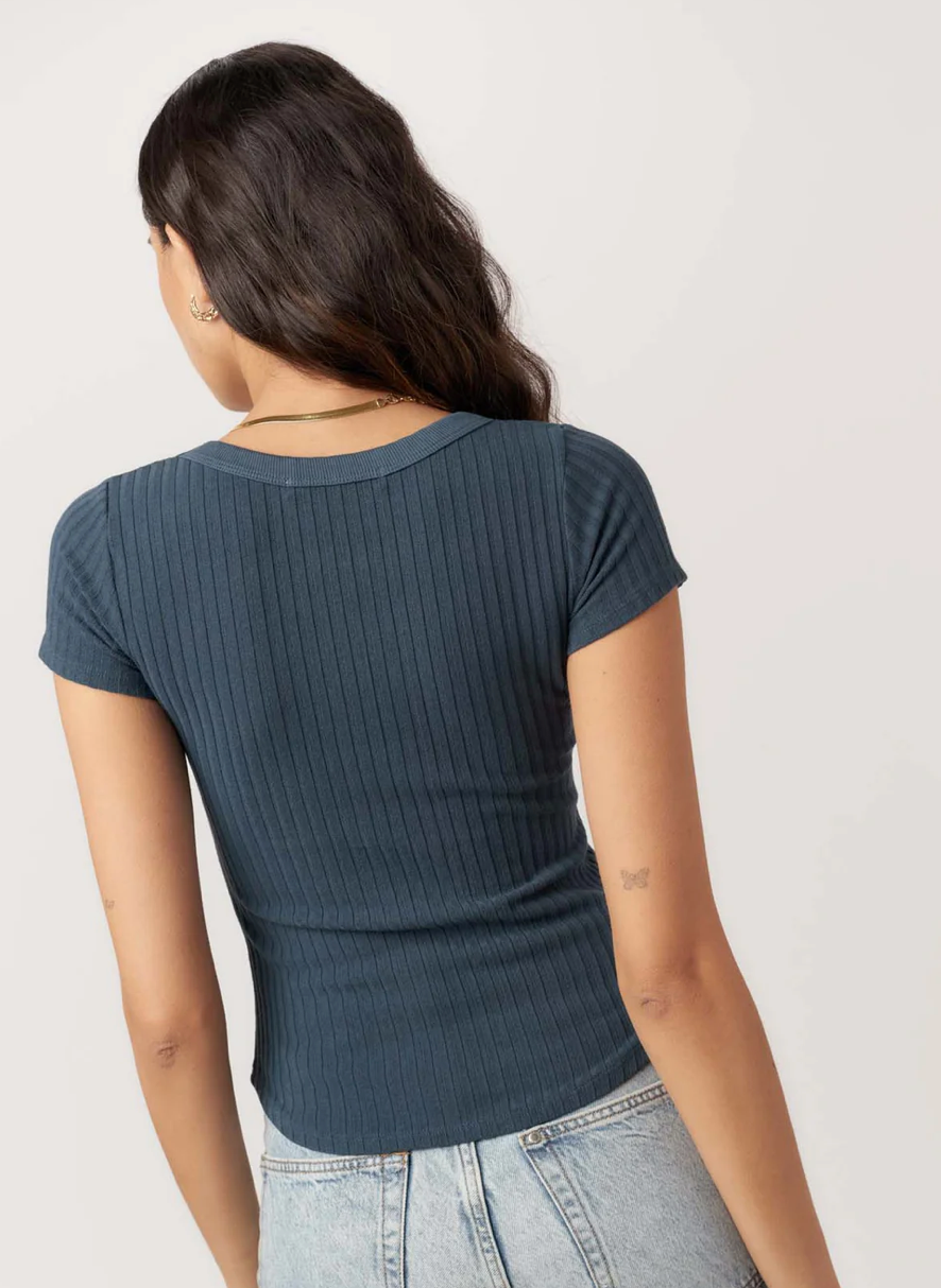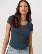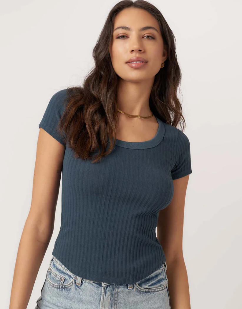 The Julie Scoop Neck Sweater Rib Tee has a fitted silhouette and is made with our iconic sweater rib fabric. Combine those two details with a flattering scoop neckline, and you have a tee that pairs well with just about anything.
