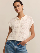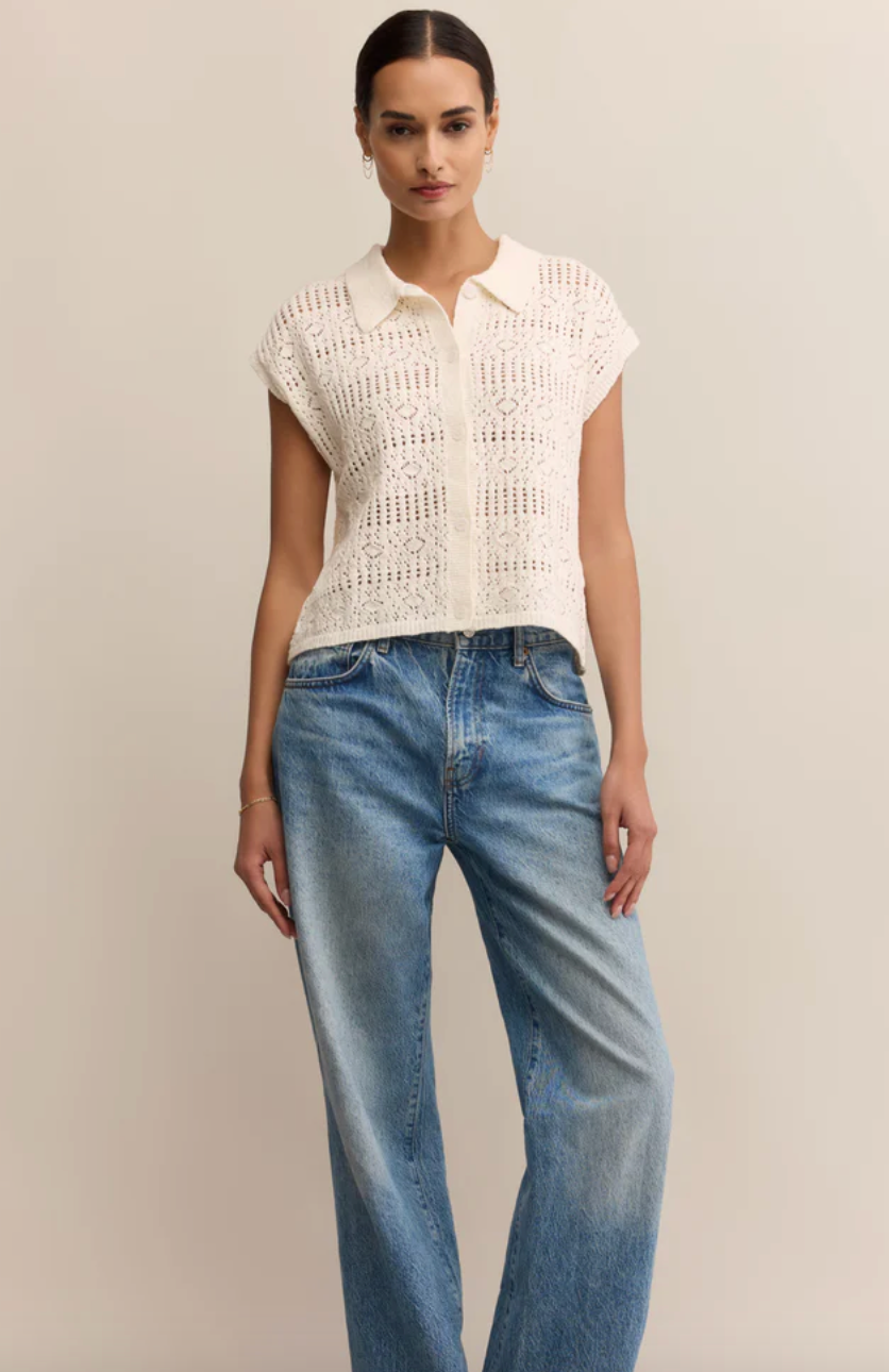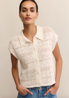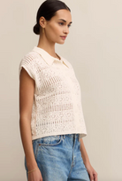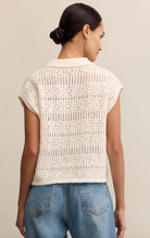 Crafted from twisted cotton slub yarns with a structured, open-knit feel, this sleeveless top features a collared neckline and button-up design. Engineered with a crochet-inspired pattern and drop shoulder, it’s textural, breathable, and designed with a modern, structured silhouette.