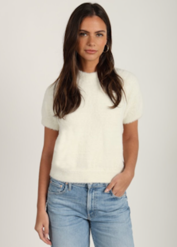 soft white, 100% polyester, short sleeve, mock neck, soft white