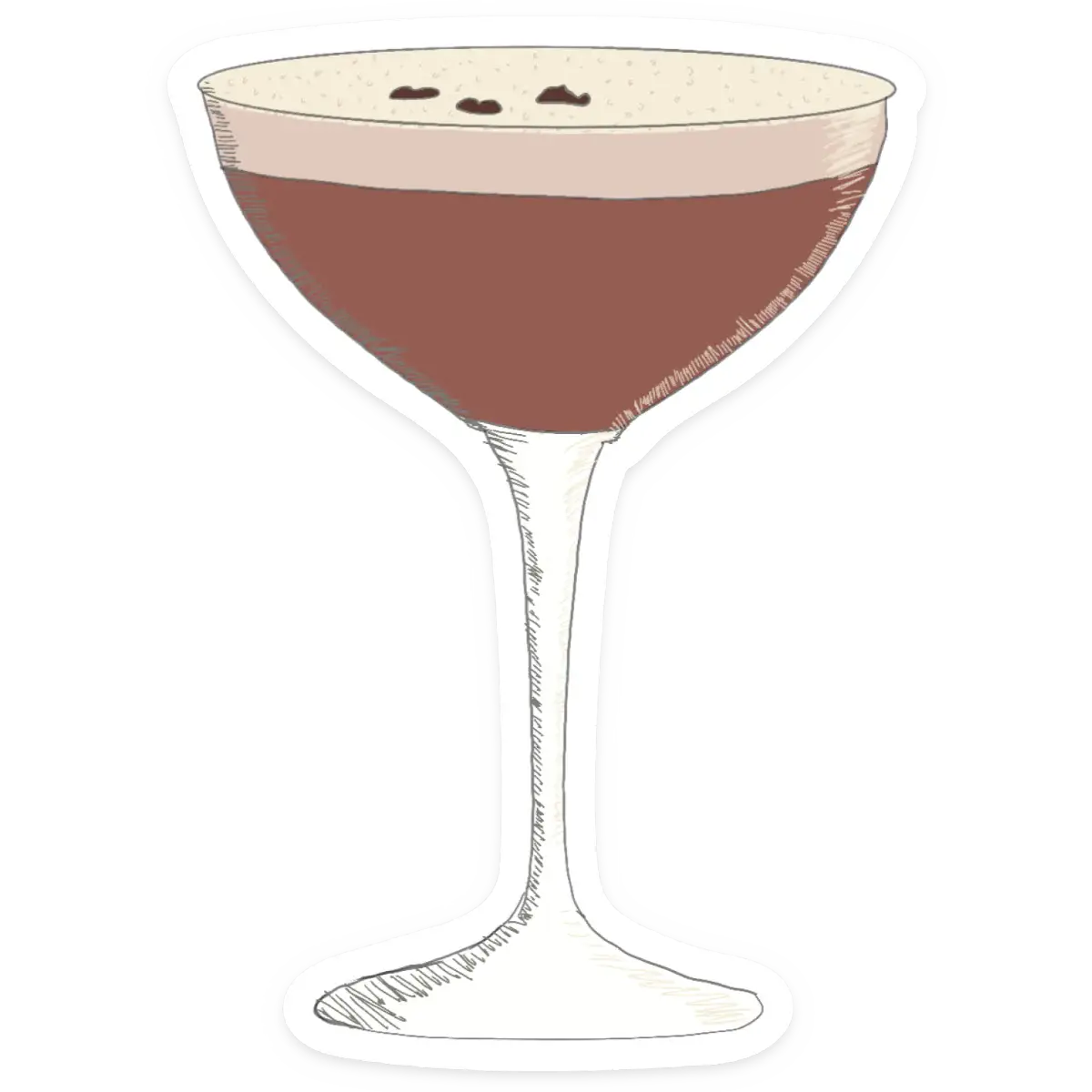 Vinyl die-cut sticker of an illustrated espresso martini glass with coffee beans garnish. Clean lines and warm neutral tones. Materials: Vinyl die-cut sticker Size: Approx. 3.47" H x 2.5" W Finish: Satin finish; waterproof Features: UV fade-resistant, scratch-resistant Artist: Ashley Perez