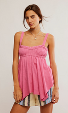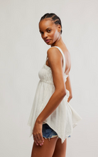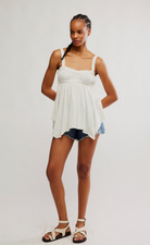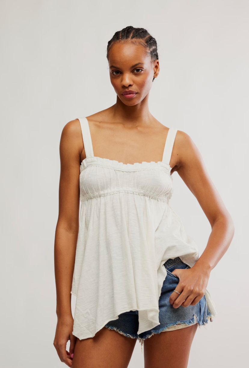 Sweet and so staple, this flowy babydoll tank is featured in an airy cotton fabrication with a ruched bust and playful fairy hem.