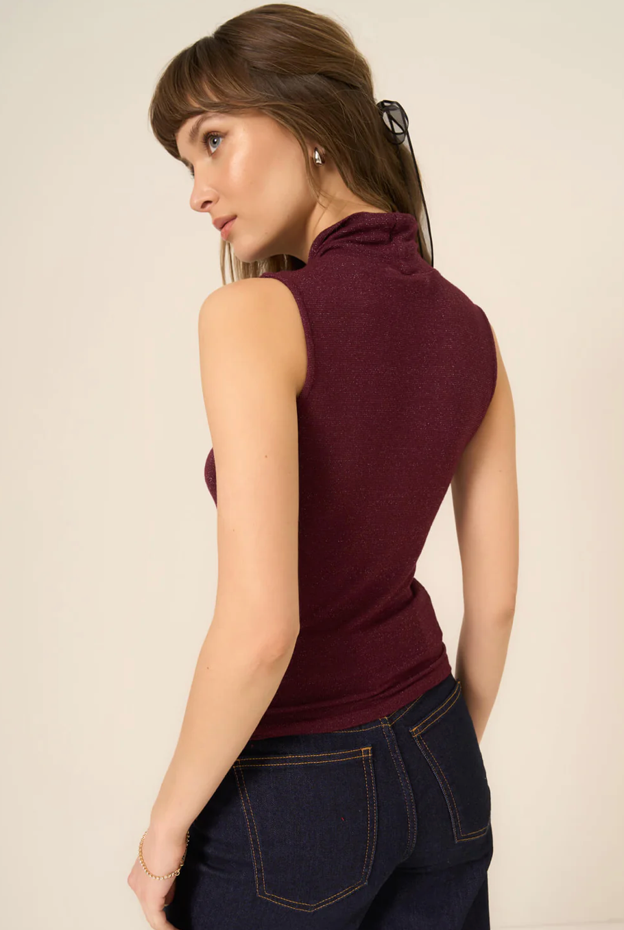 The Domino Lurex Mock Neck Tank adds just the right amount of sparkle with its metallic sheen and textured finish. This form-fitting piece hugs in all the right places, while the mock neck keeps it effortlessly cool. Pair it with a mini skirt and cowboy boots or jeans and a chunky belt for that perfect night-out vibe.