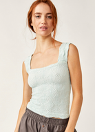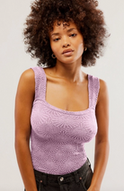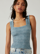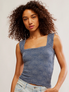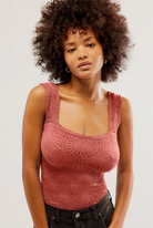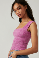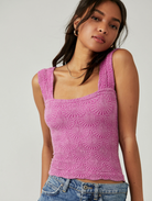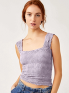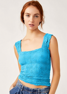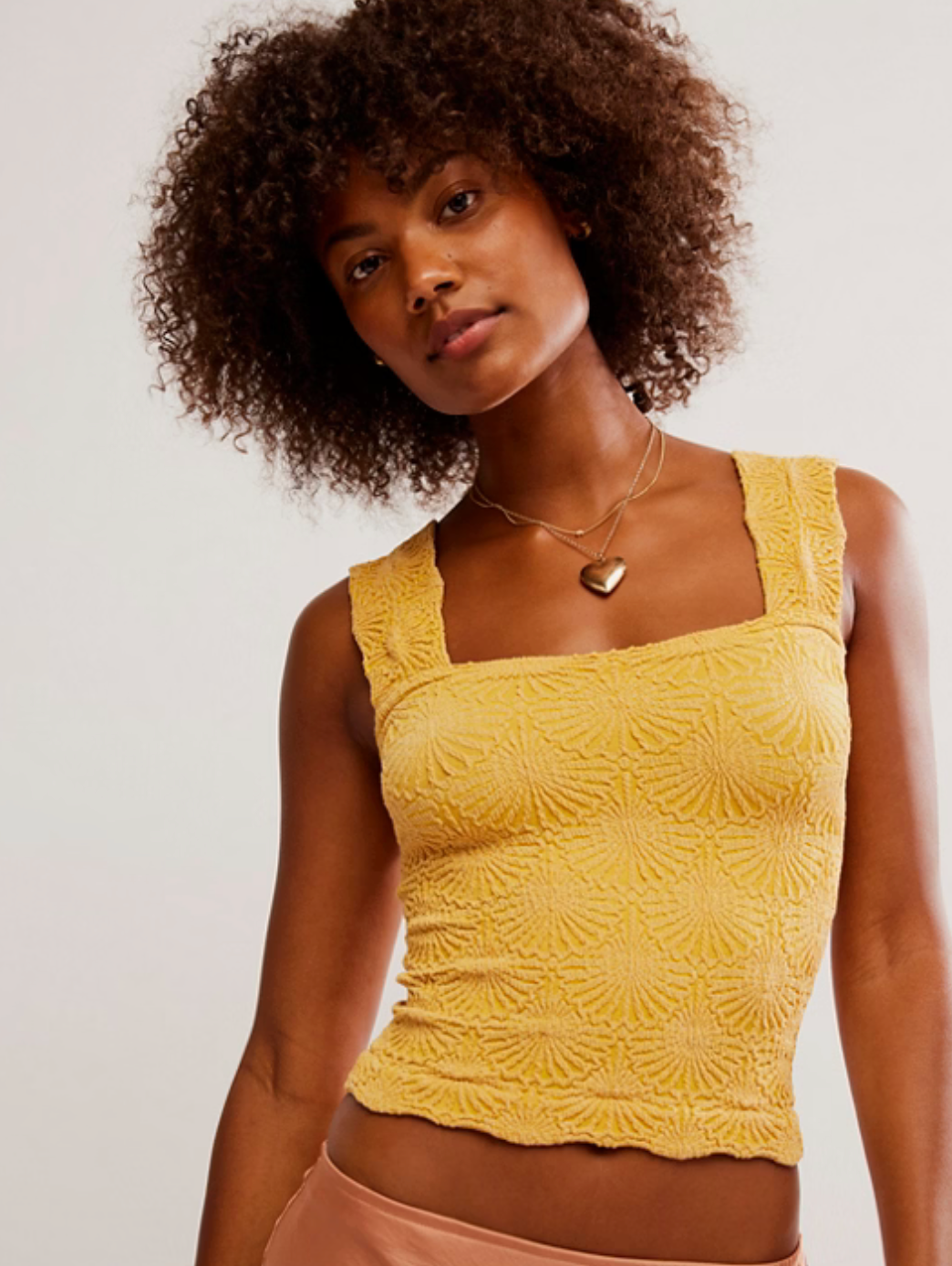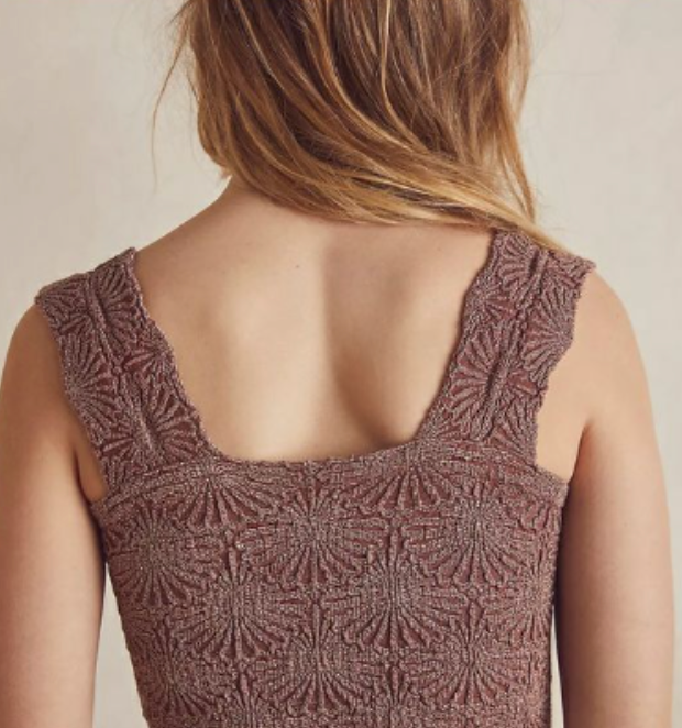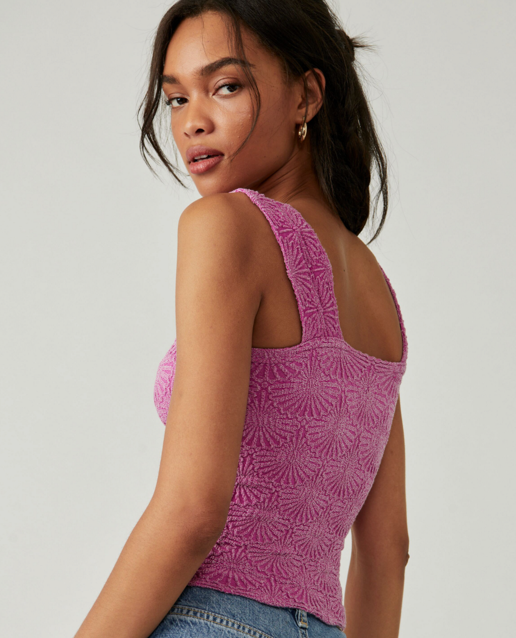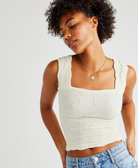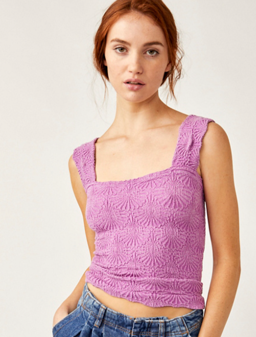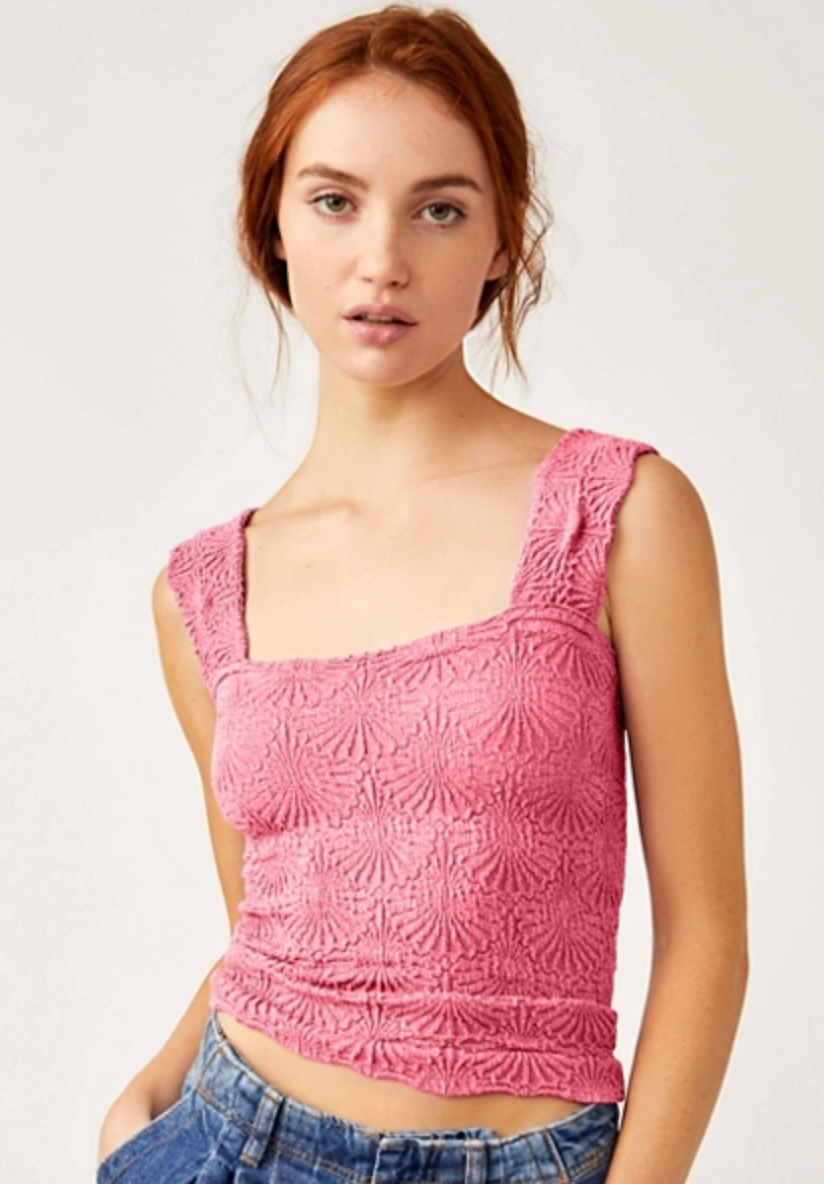 So sweet cami featured in a cropped, square-neck silhouette and jacquard floral design with statement lettuce-edge hemline.