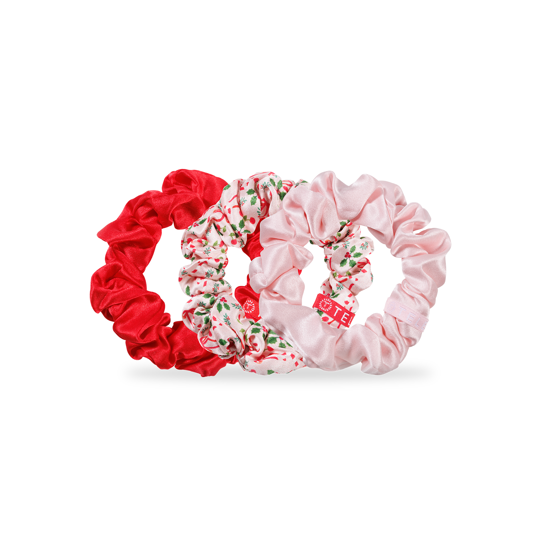 Take care of your bedtime hair and hold your hair in place with ease and softness! Blushmas Large Silk Scrunchies in Pink and Red offer a secure grip without slipping—thanks to the innovative inner coil—wrapped in soft, natural silk.